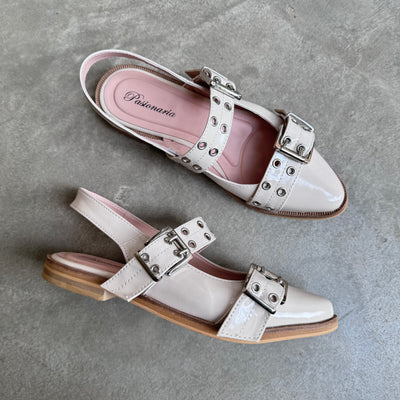 ZAPATOS CHATITAS PIPINA BEIGE PUNTA FINA ECO CUERO