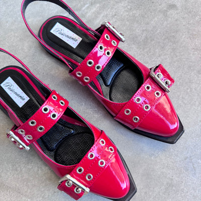 ZUECOS SIL CHAROL ROJO con 2 TIRAS OJALILLOS Y HEBILLAS- LINEA LUXURY