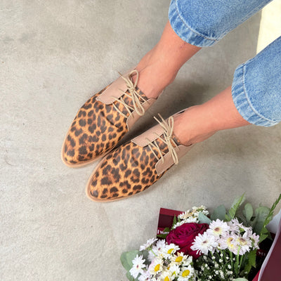 ZAPATO OLIVIA ACORDONADO en PUNTA COMBINADO LEOPARDO con VISÓN