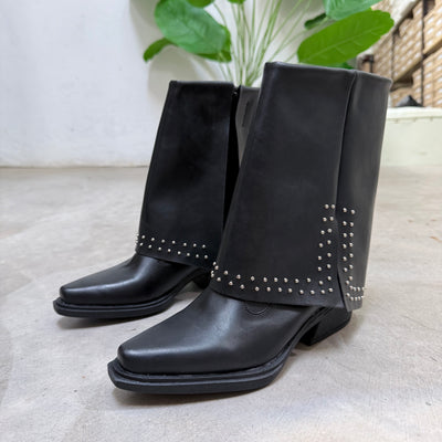 BOTAS FRANCIS CAÑA MEDIA CON SOLAPA CON TACHAS CIERRE LATERAL