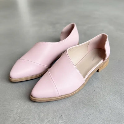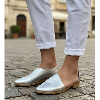 ZAPATOS MOCASINES CHATITAS IORIS ROSA VINCHA PLATA Y TALONERA PLATA