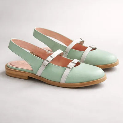 ZAPATOS MOCASINES CHATITAS IORIS CELESTE con VINCHA Y TALONERA NATURAL