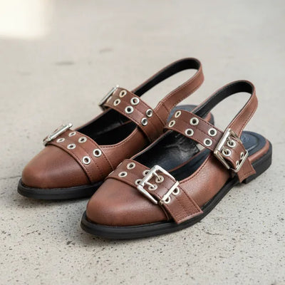 ZUECOS SIL CHOCOLATE con 2 TIRAS OJALILLOS Y HEBILLAS en PU - LINEA LUXURY