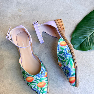 CHATITAS GUILLERMINA NINITA PUNTA FINA COMBINADO MBURUCUYÁ CORTE CORAZÓN TALON Y PULSERA LILA (Ed. LIMITADA)