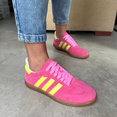 ZAPATILLAS PAMPA FUCSIA 3 TIRAS AMARILLO LIMA ACORDONADA
