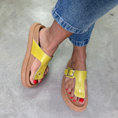 SANDALIAS OJOTA DOLLY CUERO (MOSTAZA)