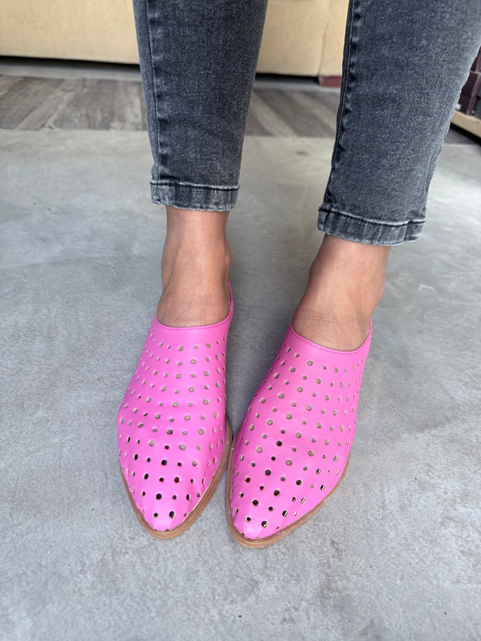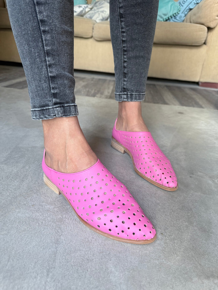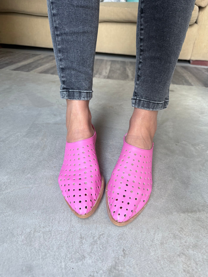 CHATITAS ALADINO FUCSIA PUNTA FINA CALADAS SIMIL CUERO