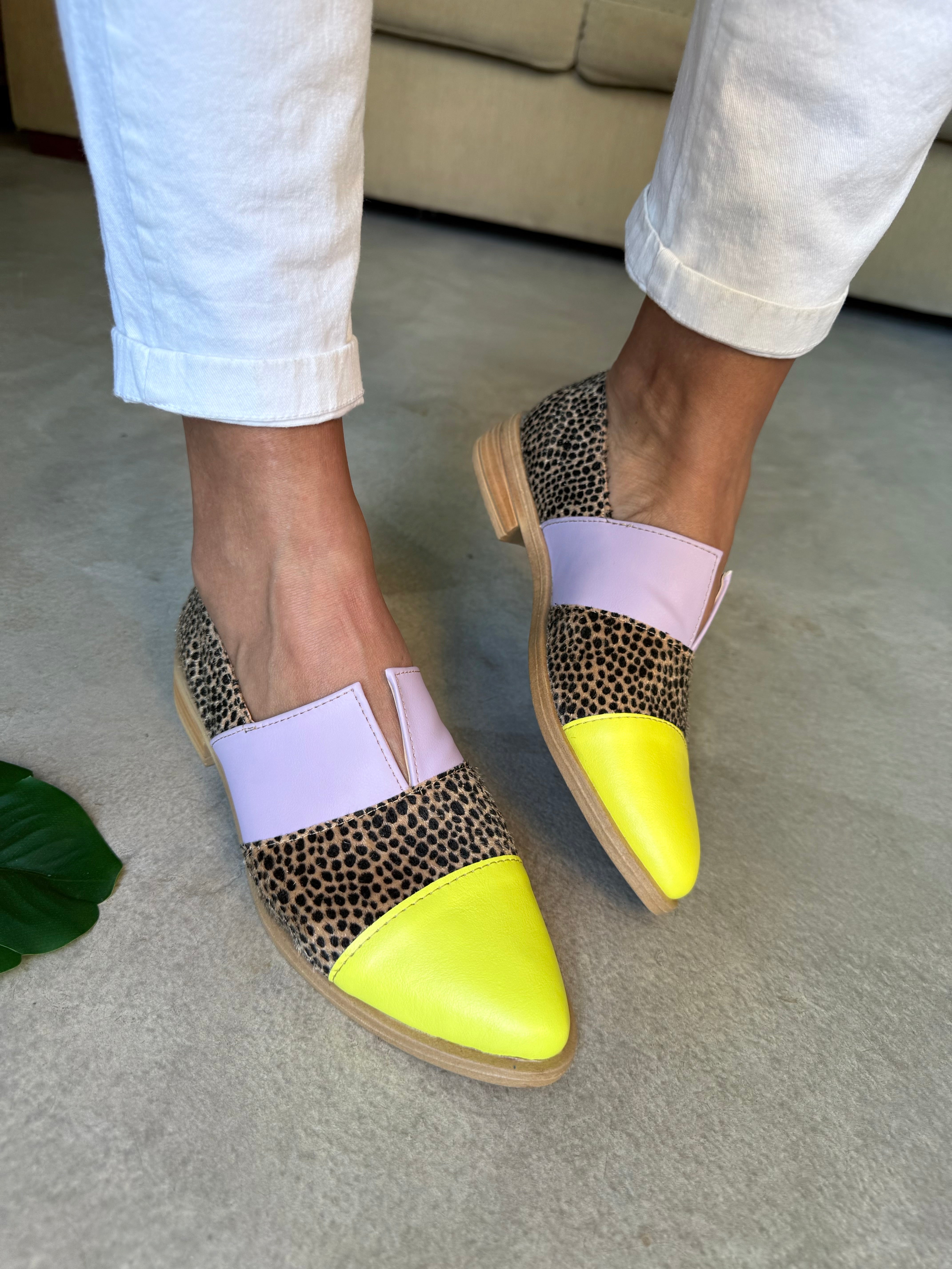 Color: CHITA PELO COMBINADO CON ECOCUERO LILA Y AMARILLO LIMA