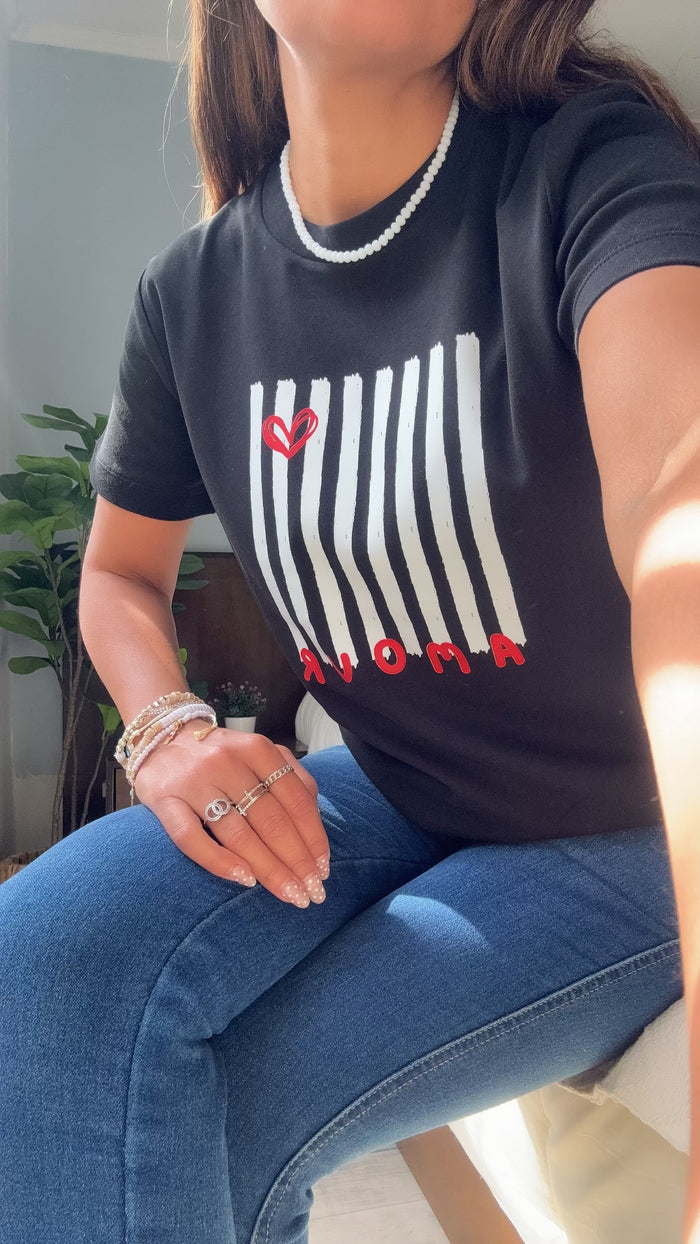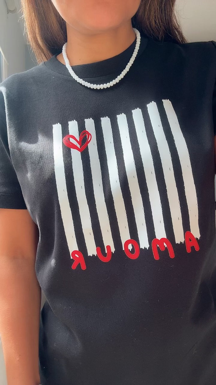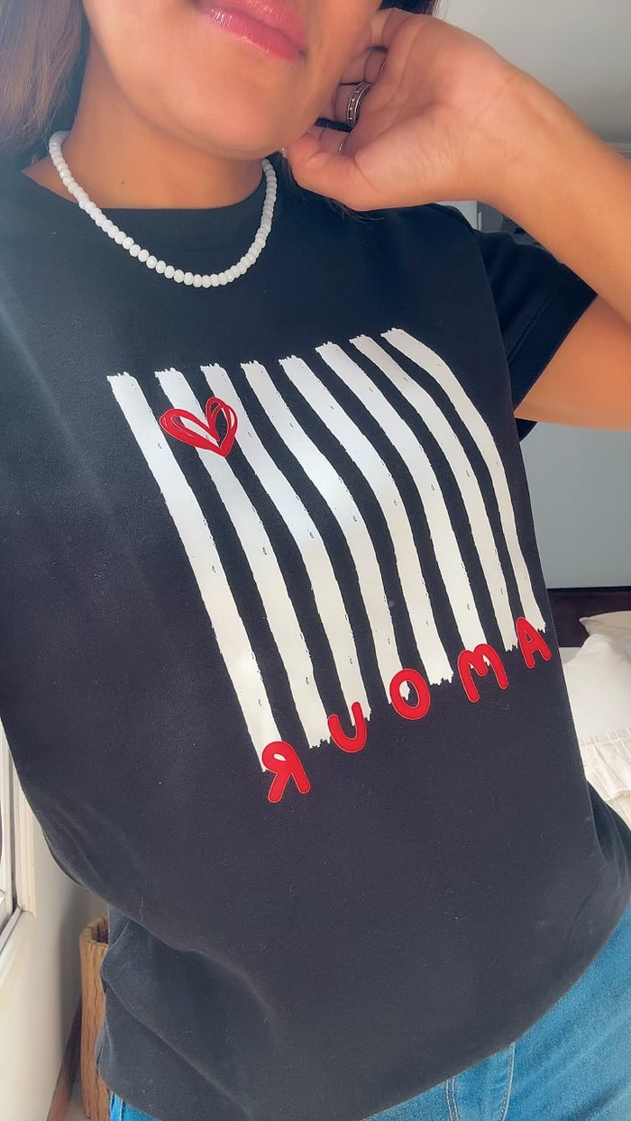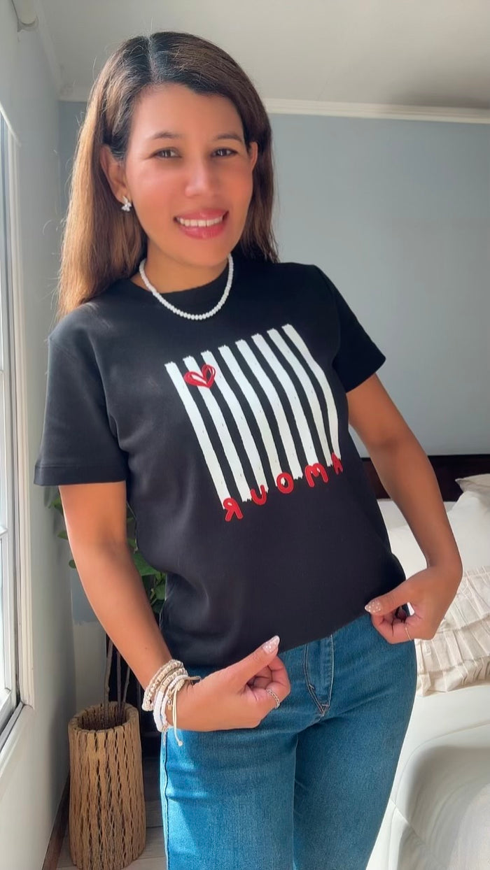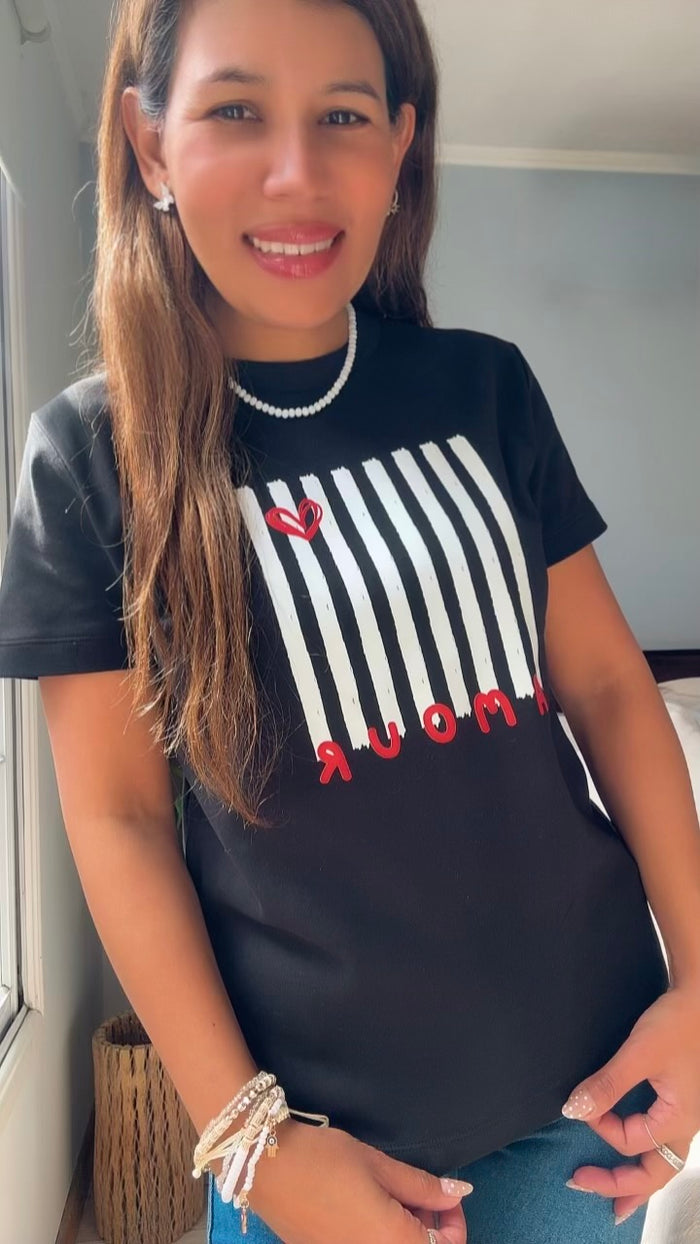 REMERA AMOUR NEGRO MANGA CORTA DE ALGODÓN ESTAMPADA Cuello Redondo (Linea Amalfi)