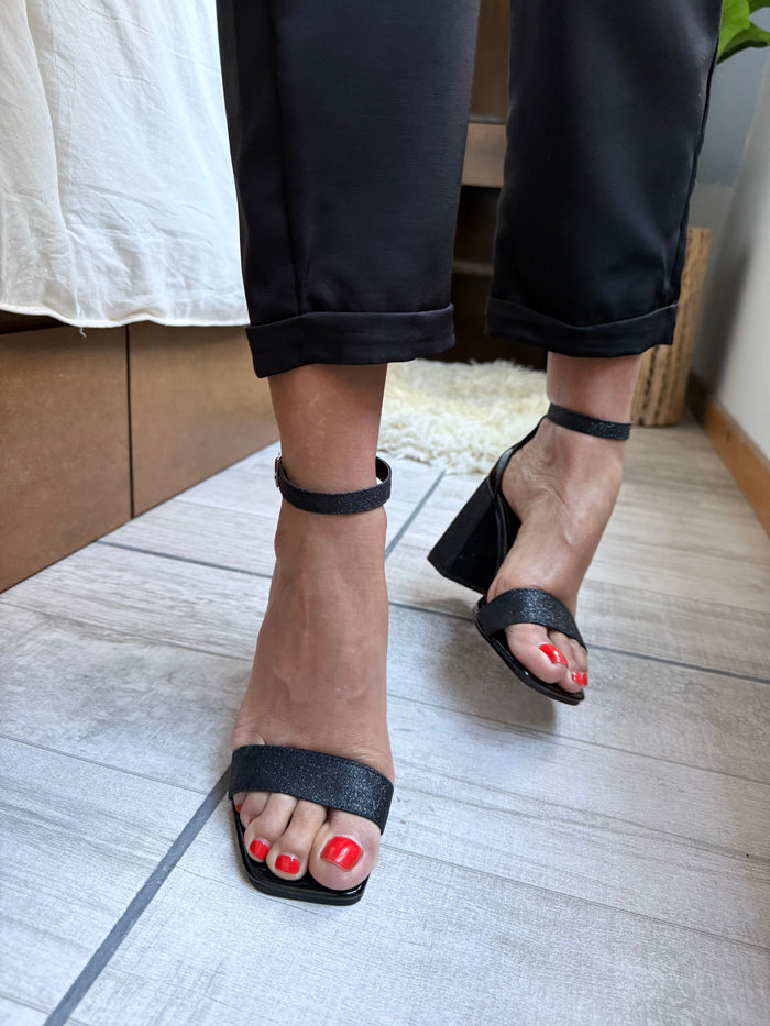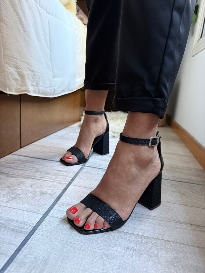SANDALIAS JANA FAJA GLITTER NEGRO Y TACO 8CM