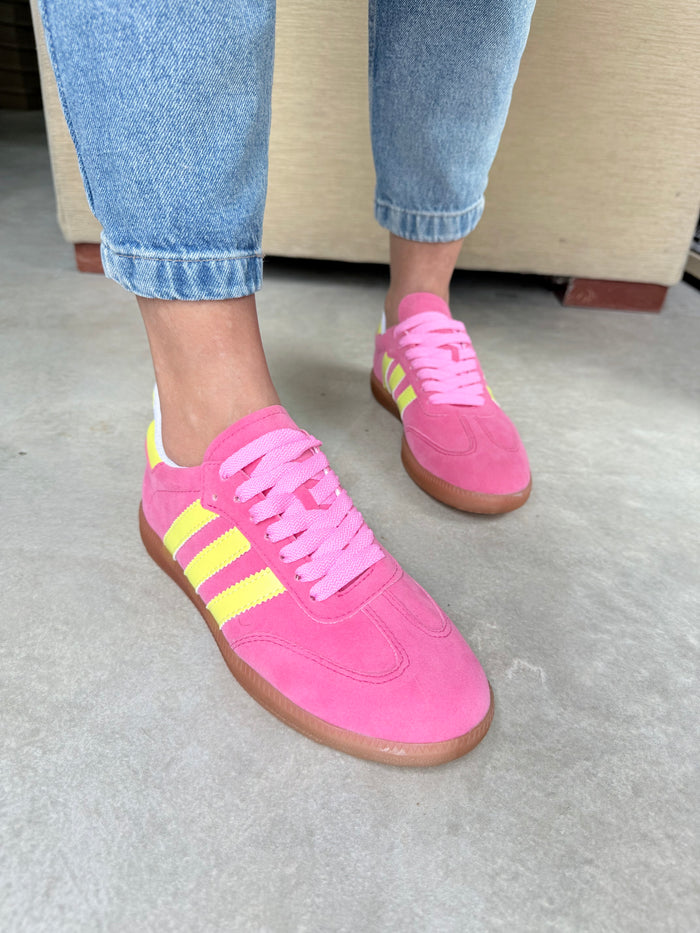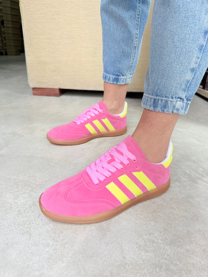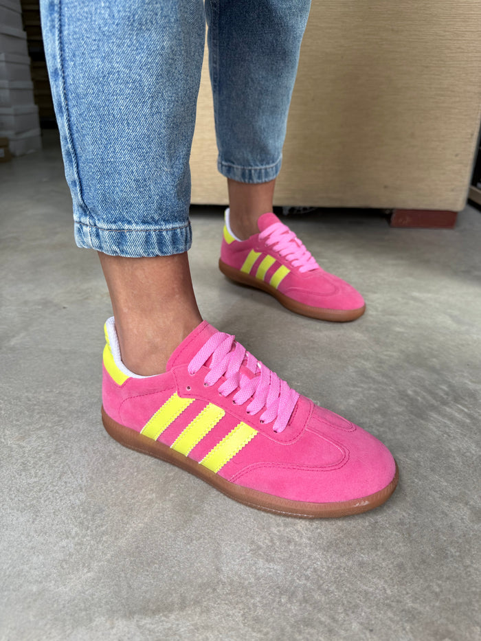 ZAPATILLAS PAMPA FUCSIA 3 TIRAS AMARILLO LIMA ACORDONADA