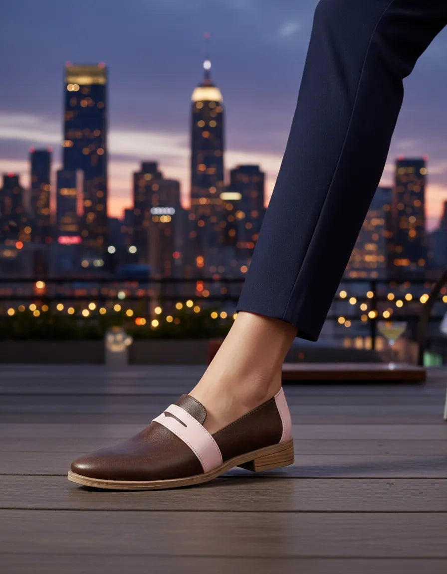 - Color: Chocolate combinada con vincha y talonera en Rosa
