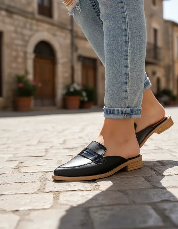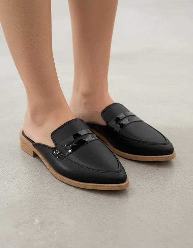 ZUECOS ISABEL SIMIL CUERO Tipo SLIPPERS COMBINADO NEGRO