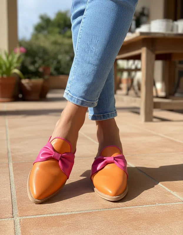 ZUECOS SABRINA NARANJA MOÑO FUCSIA Tipo SLIPPERS