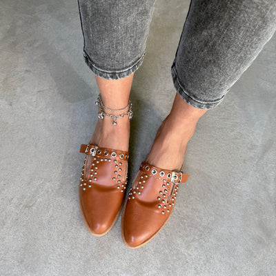 ZUECOS MECHI NUDE SIMIL CUERO Tipo SLIPPERS ROCK con DETALLE de TACHAS