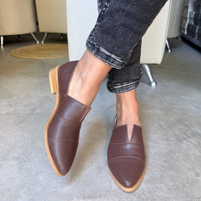 ZAPATO GALA CHOCOLATE NUDO CHOCO Y TACO PUNTA FINA