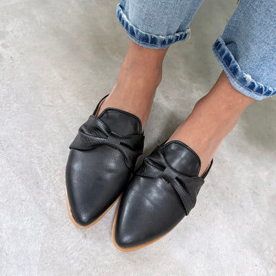 ZUECOS SABRINA NEGRO ECOCUERO P.U. MOÑO TEXTURADO FLORES Tipo SLIPPERS