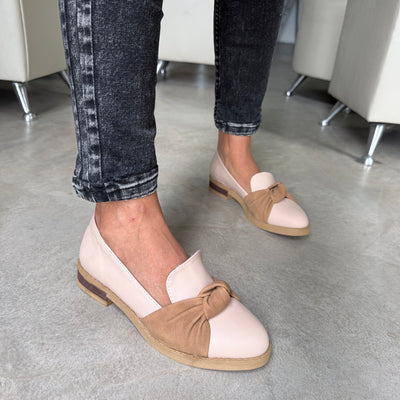 CHATITAS BALLERINA OFELIA BEIGE PU PUNTA REDONDA PU ROSA Detalle CORDÓN