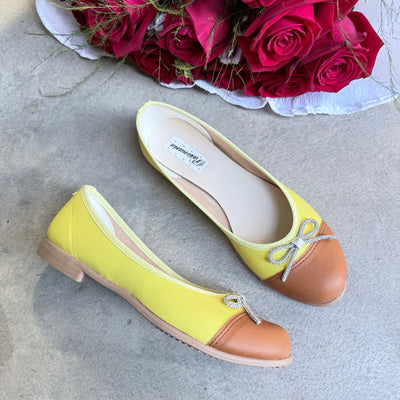 CHATITAS BALLERINA OFELIA AMARILLO PU PUNTA REDONDA PU SUELA Detalle CORDÓN