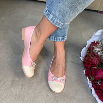 CHATITAS BALLERINA OFELIA BEIGE PU PUNTA REDONDA PU ROSA Detalle CORDÓN