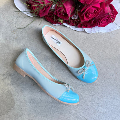 CHATITAS BALLERINA OFELIA CELESTE PU PUNTA REDONDA CHAROL CELESTE Detalle CORDÓN