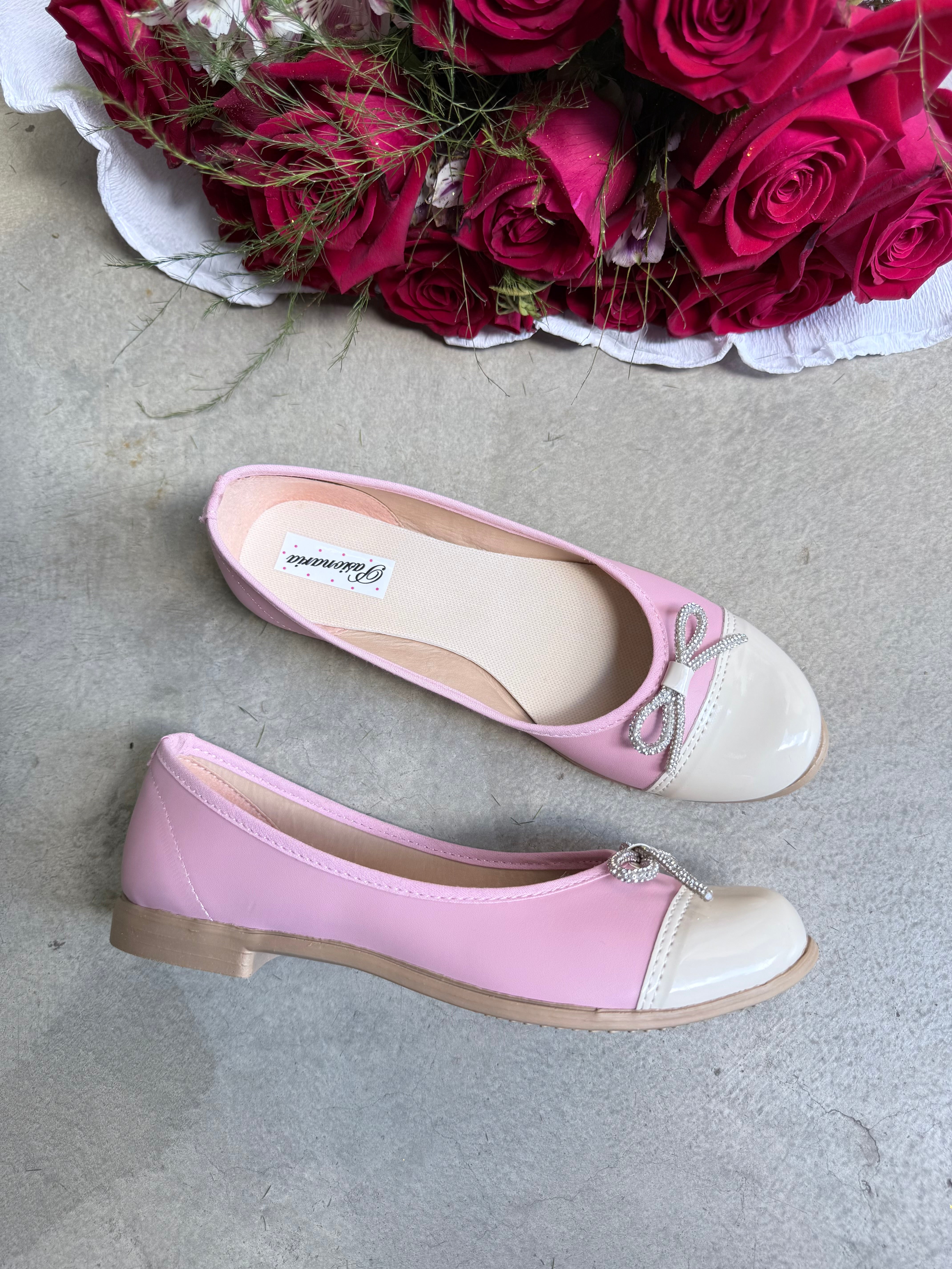 CHATITAS BALLERINA OFELIA ROSA PU PUNTA REDONDA CHAROL BEIGE Detalle CORDÓN