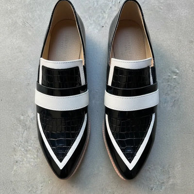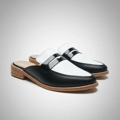 ZUECOS ISABEL SIMIL CUERO Tipo SLIPPERS COMBINADO NEGRO Y BLANCO