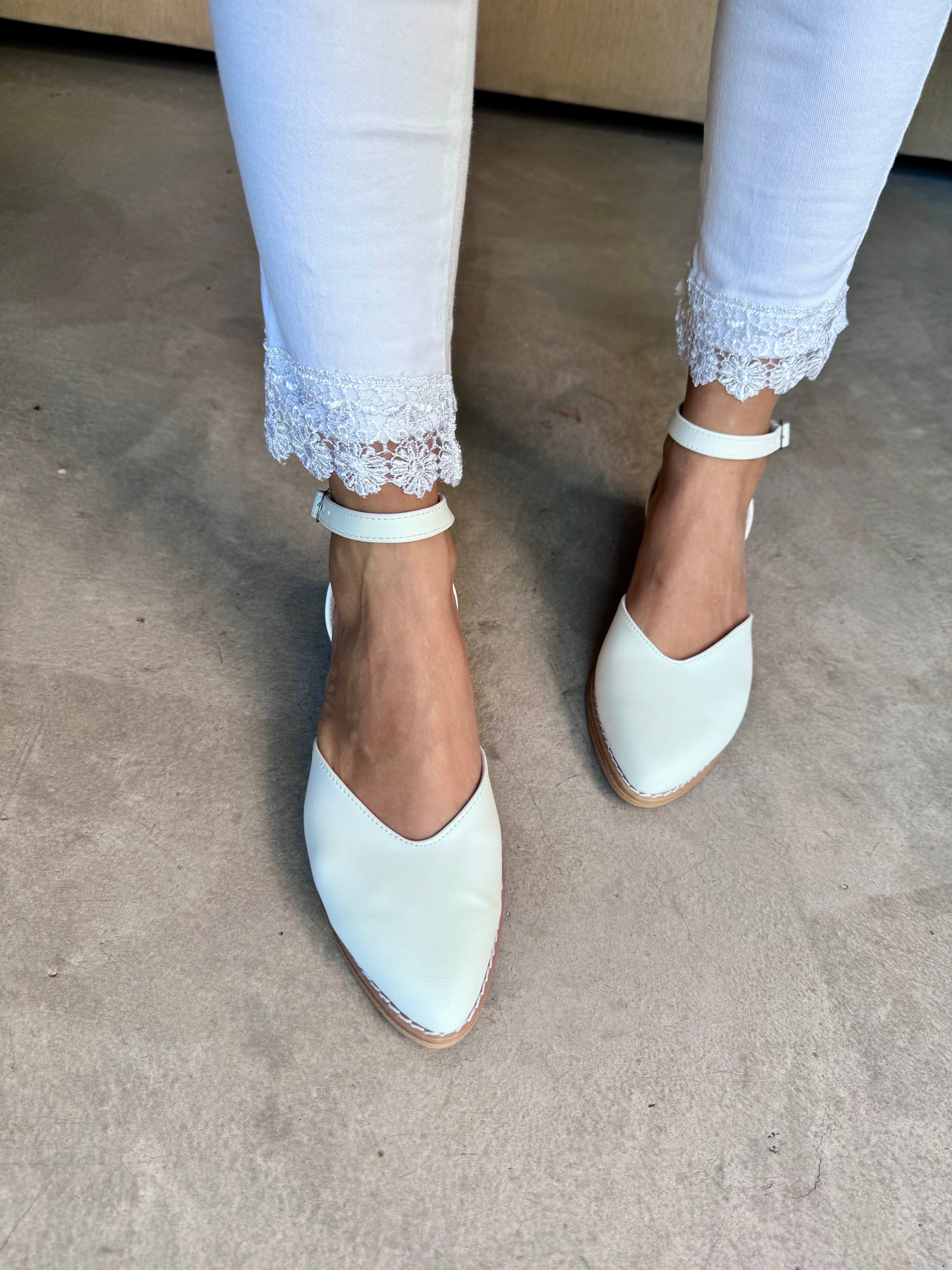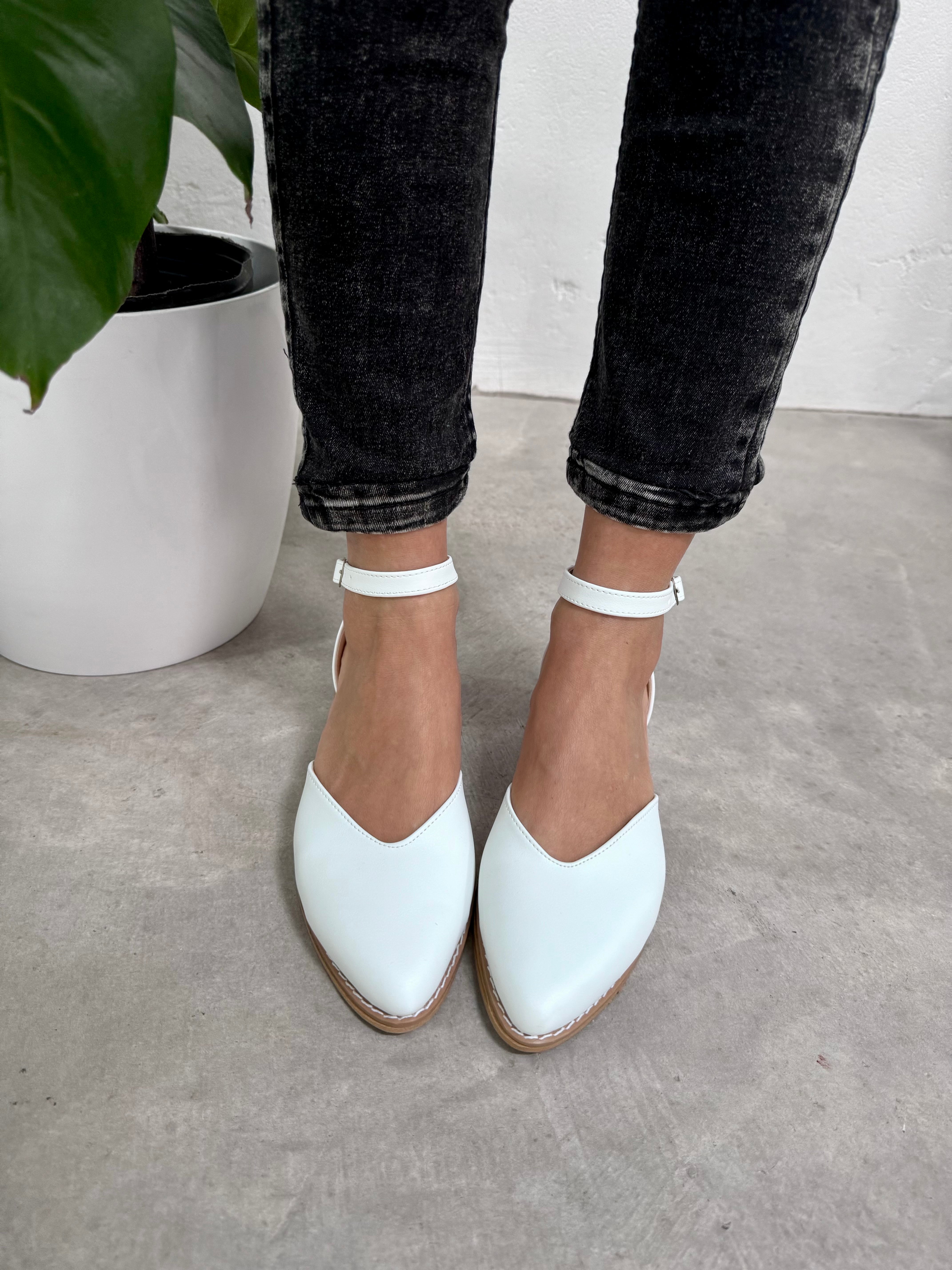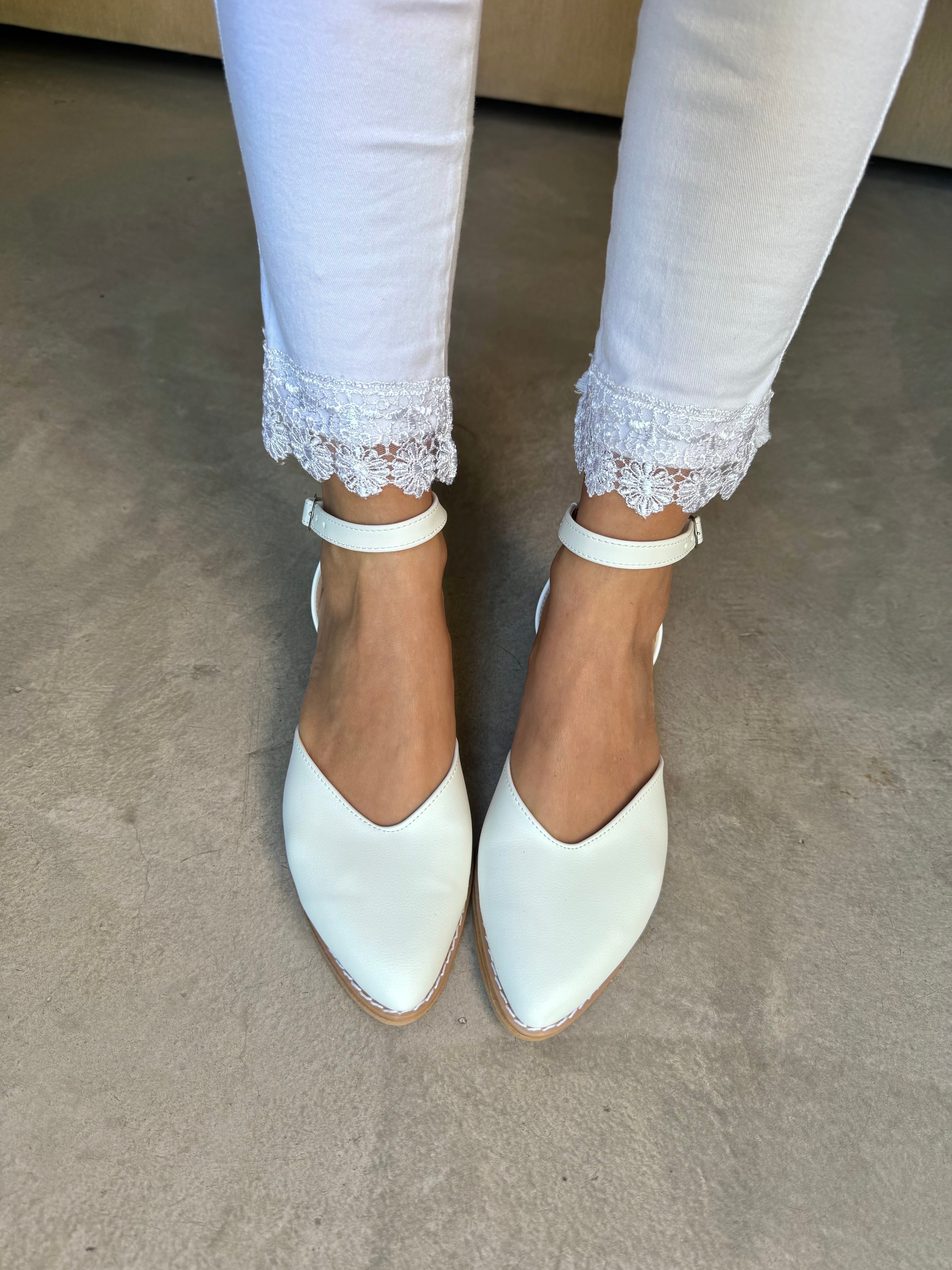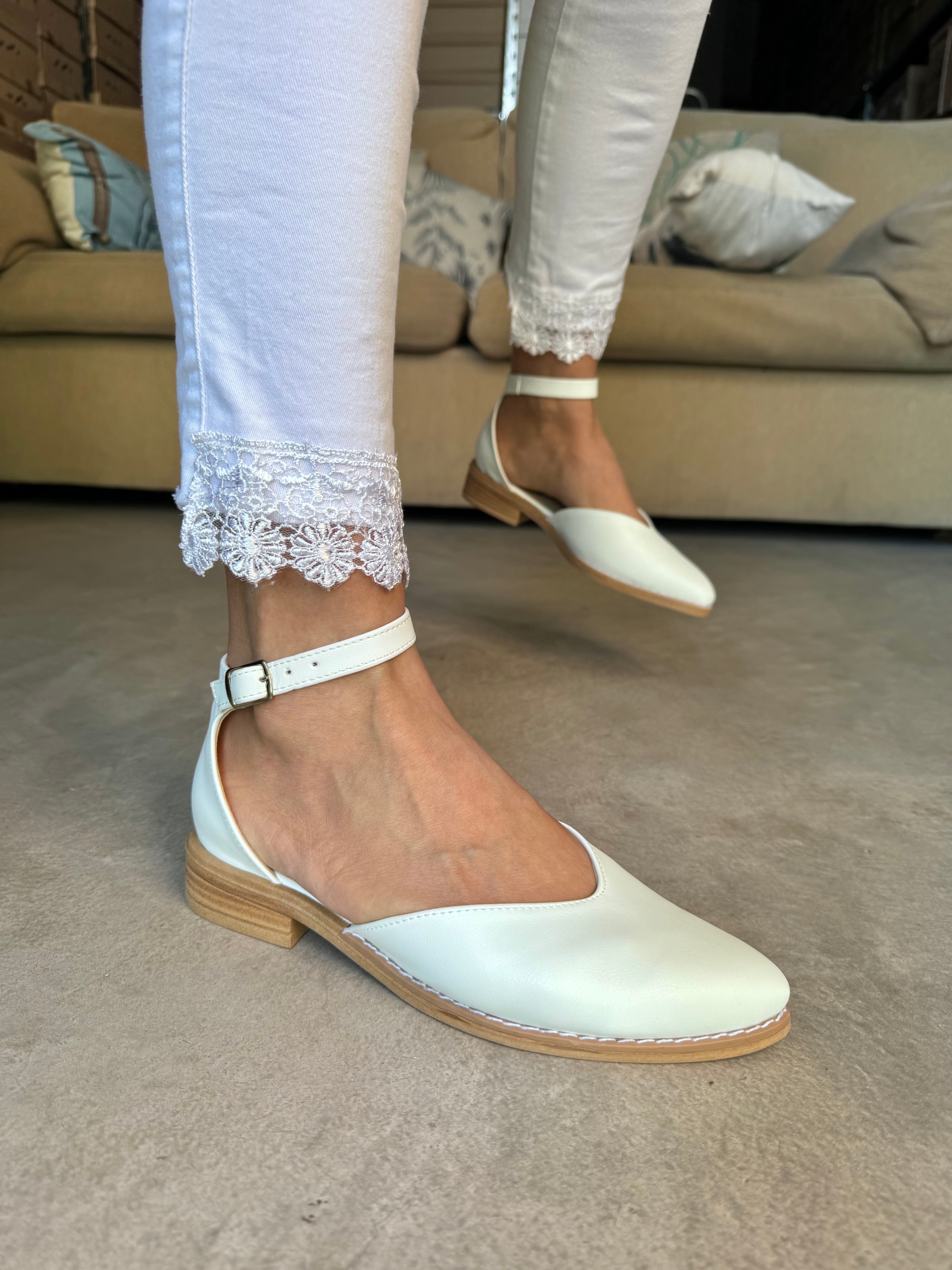 NINITA (Art. 310) INFORMACIÓN DEL PRODUCTO: - Color: blanco Ecocuero - Diseño: corte corazón   - Material: blanco ecocuero  - Altura del Taco: 1,5 cm.  Calce NORMAL a GRANDE, armado en...