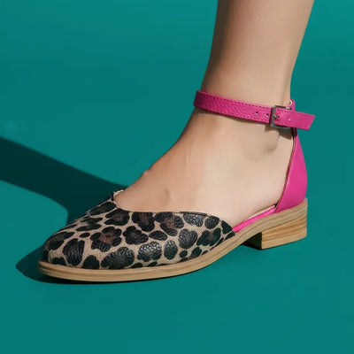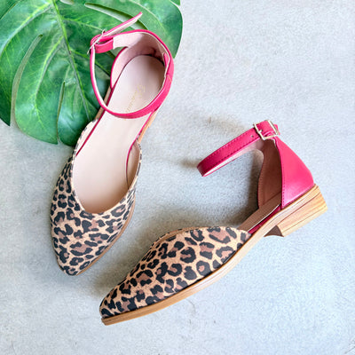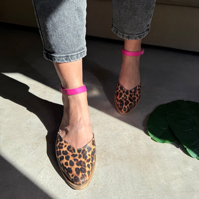 CHATITAS GUILLERMINA NINITA LEOPARDO BEIGE Y FUCSIA CORTE CORAZÓN PULSERA PUNTA FINA