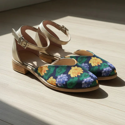 CHATITAS GUILLERMINA NINITA PUNTA FINA COMBINADO MBURUCUYÁ CORTE CORAZÓN TALON Y PULSERA ORO
