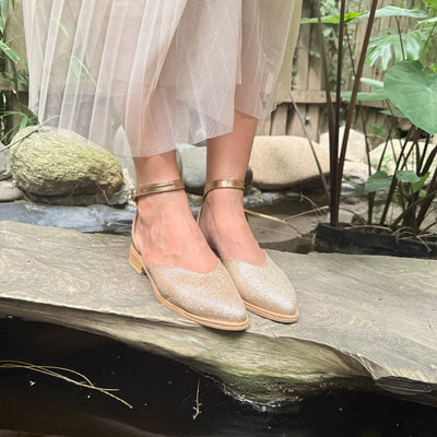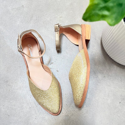 CHATITAS GUILLERMINA NINITA ORO RAFIA GLITTER CORTE CORAZÓN PULSERA PUNTA FINA