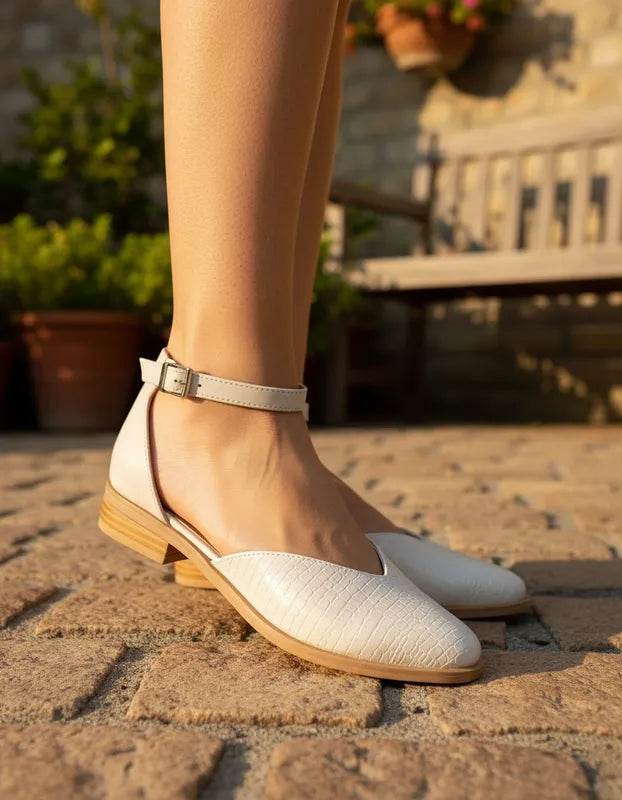 NINITA (Art. 310) INFORMACIÓN DEL PRODUCTO: Color: CHANTILLY croco combinado con CHANTILLY liso Diseño: corte corazón  Material: Símil Cuero combinado con croco en la punta y liso en talonera y pulsera...