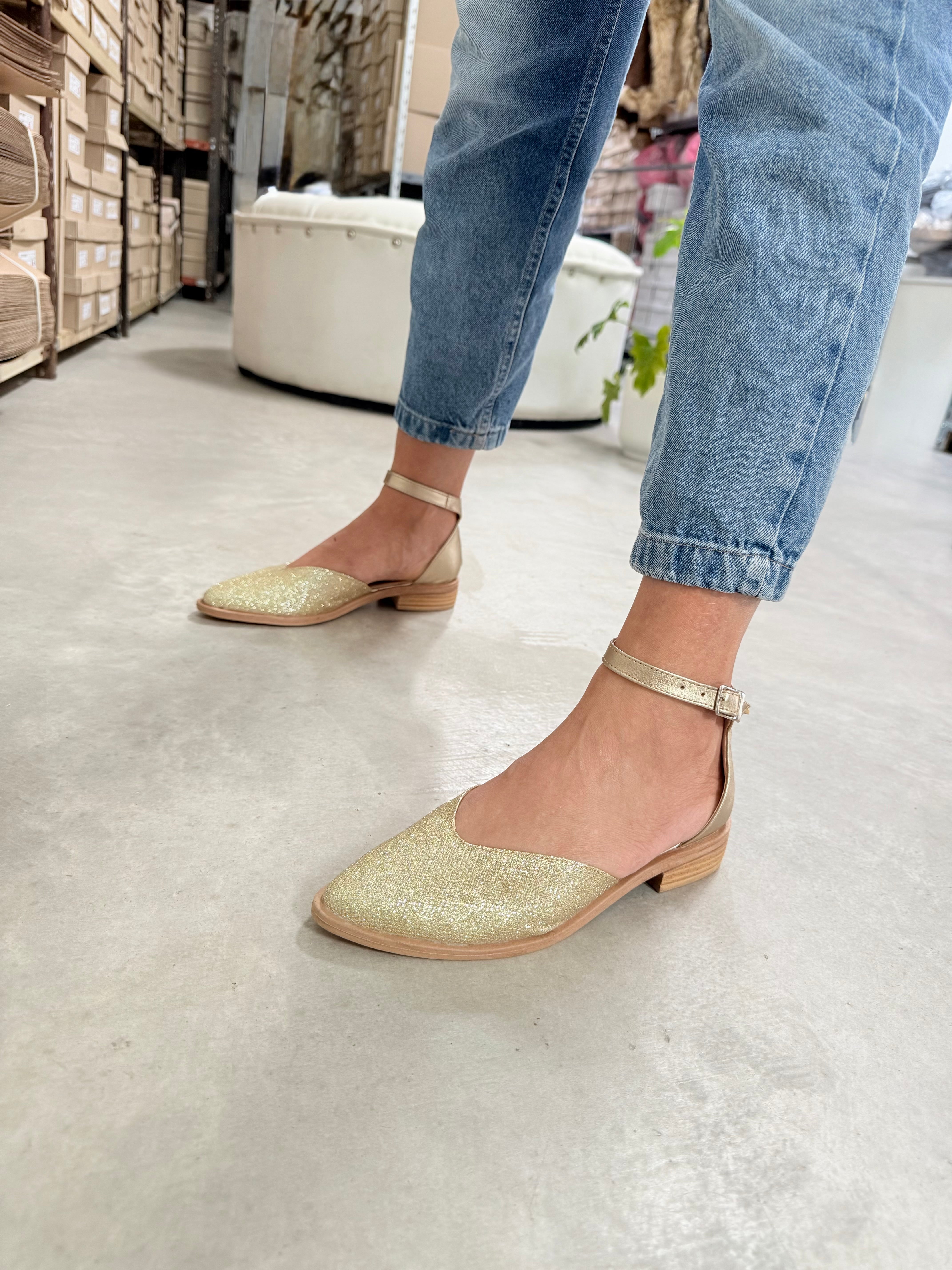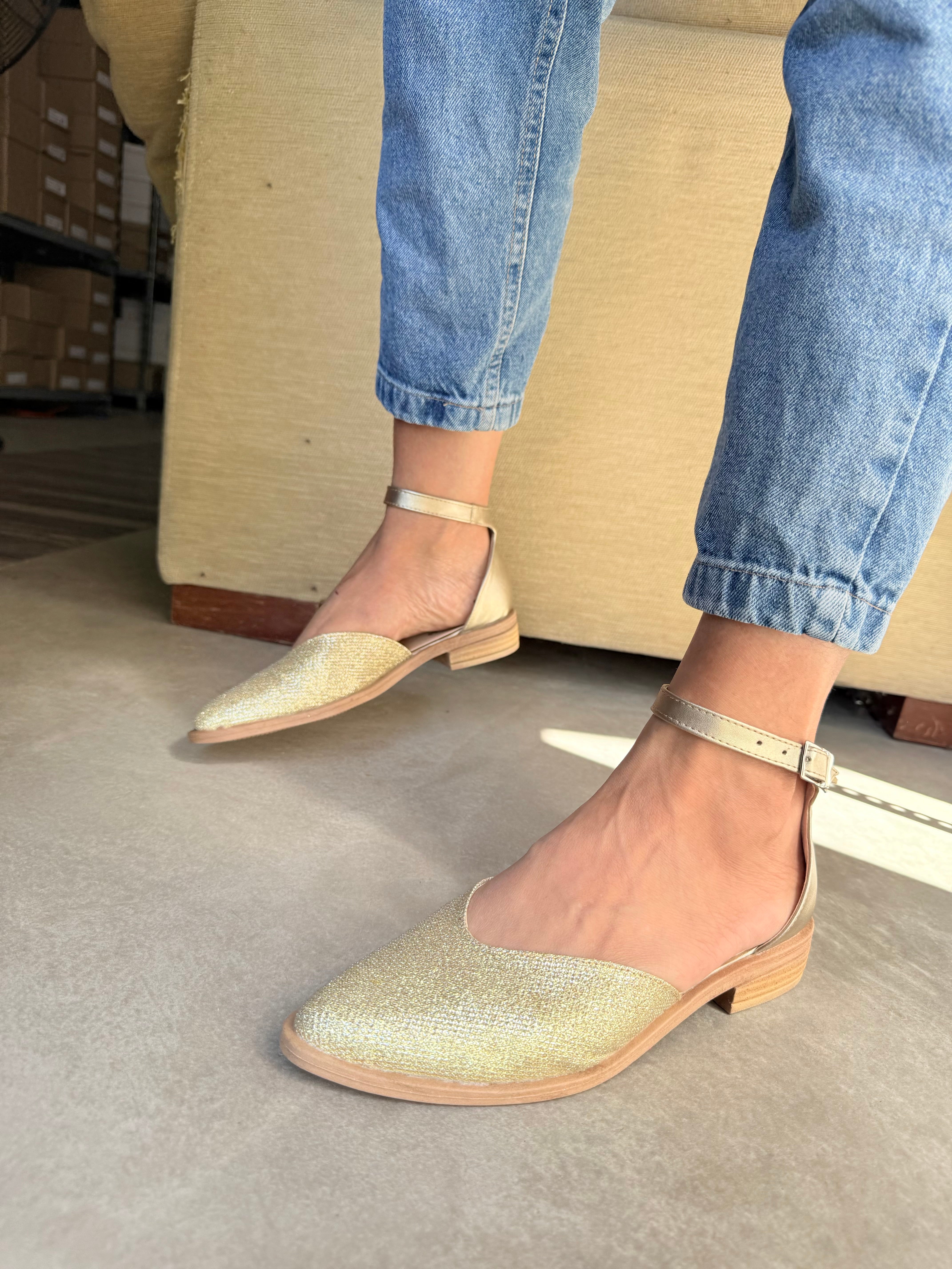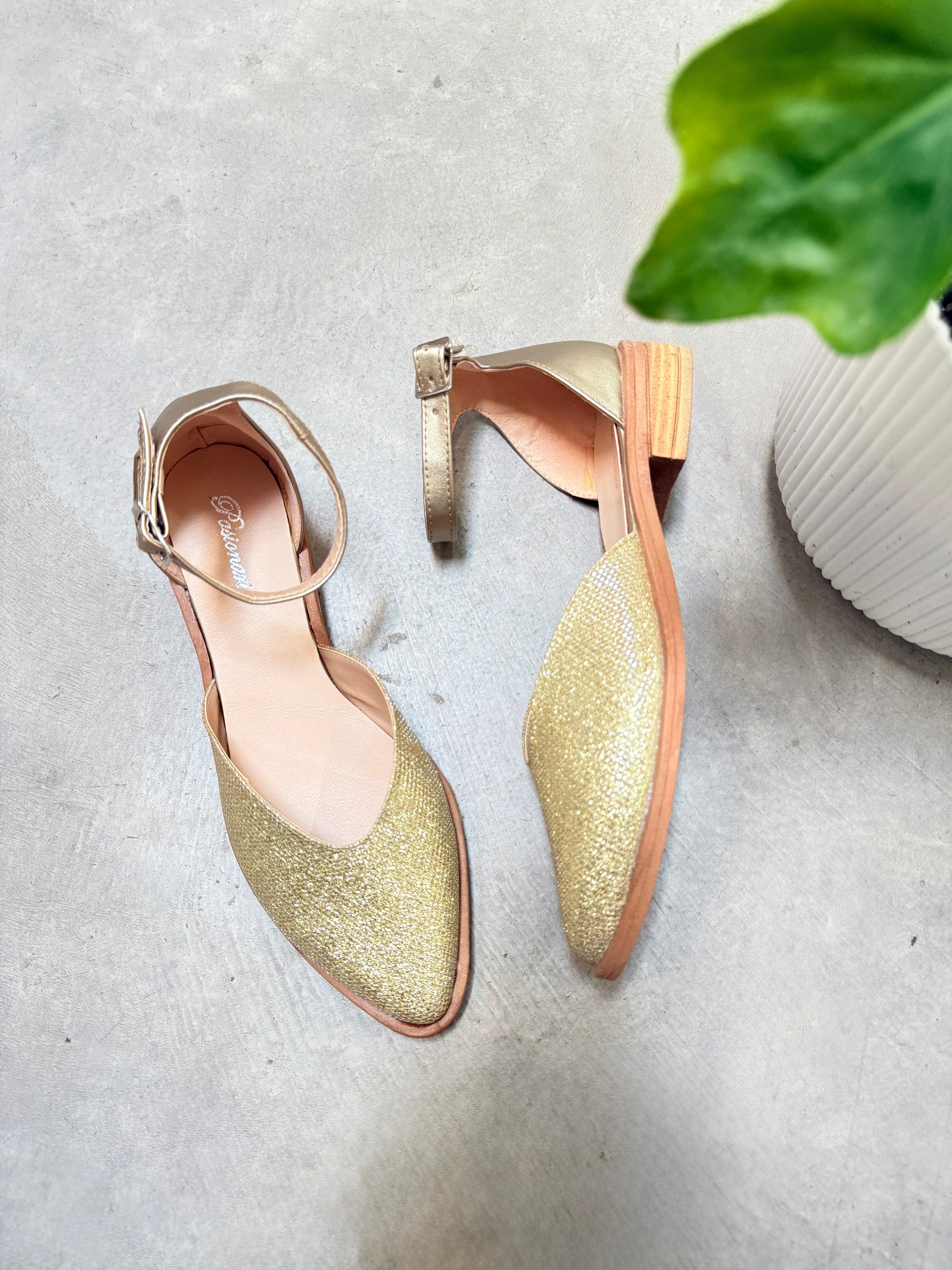 - Color: ORO Punta Rafia Glitter combinado con oro Ecocuero
