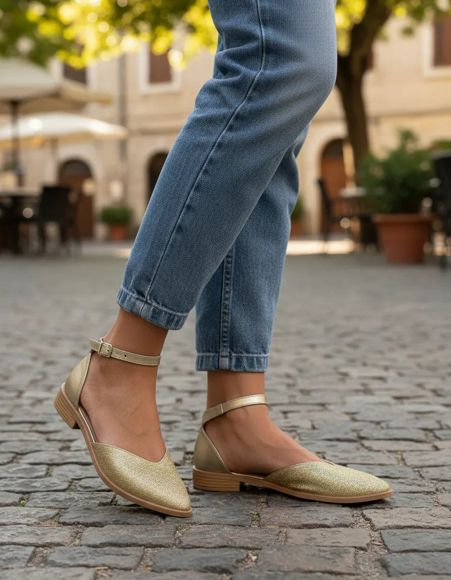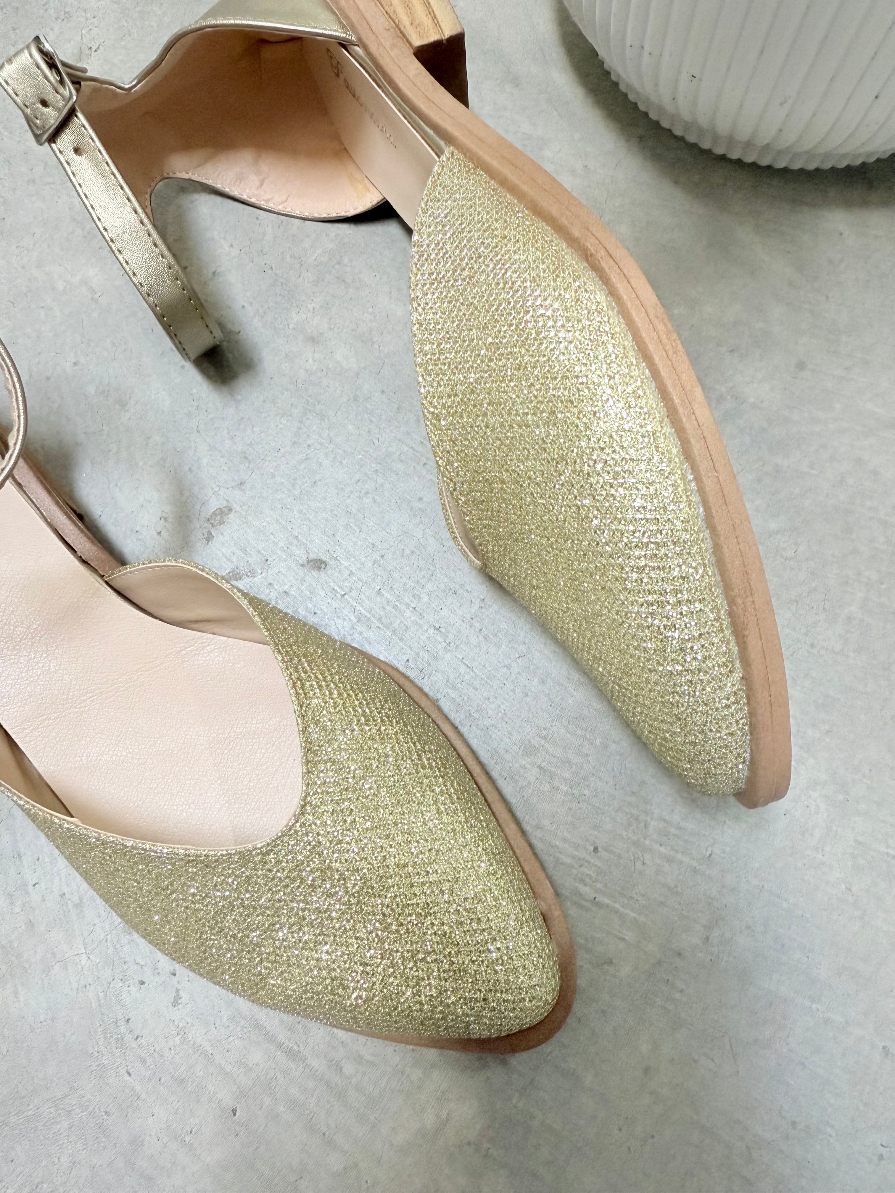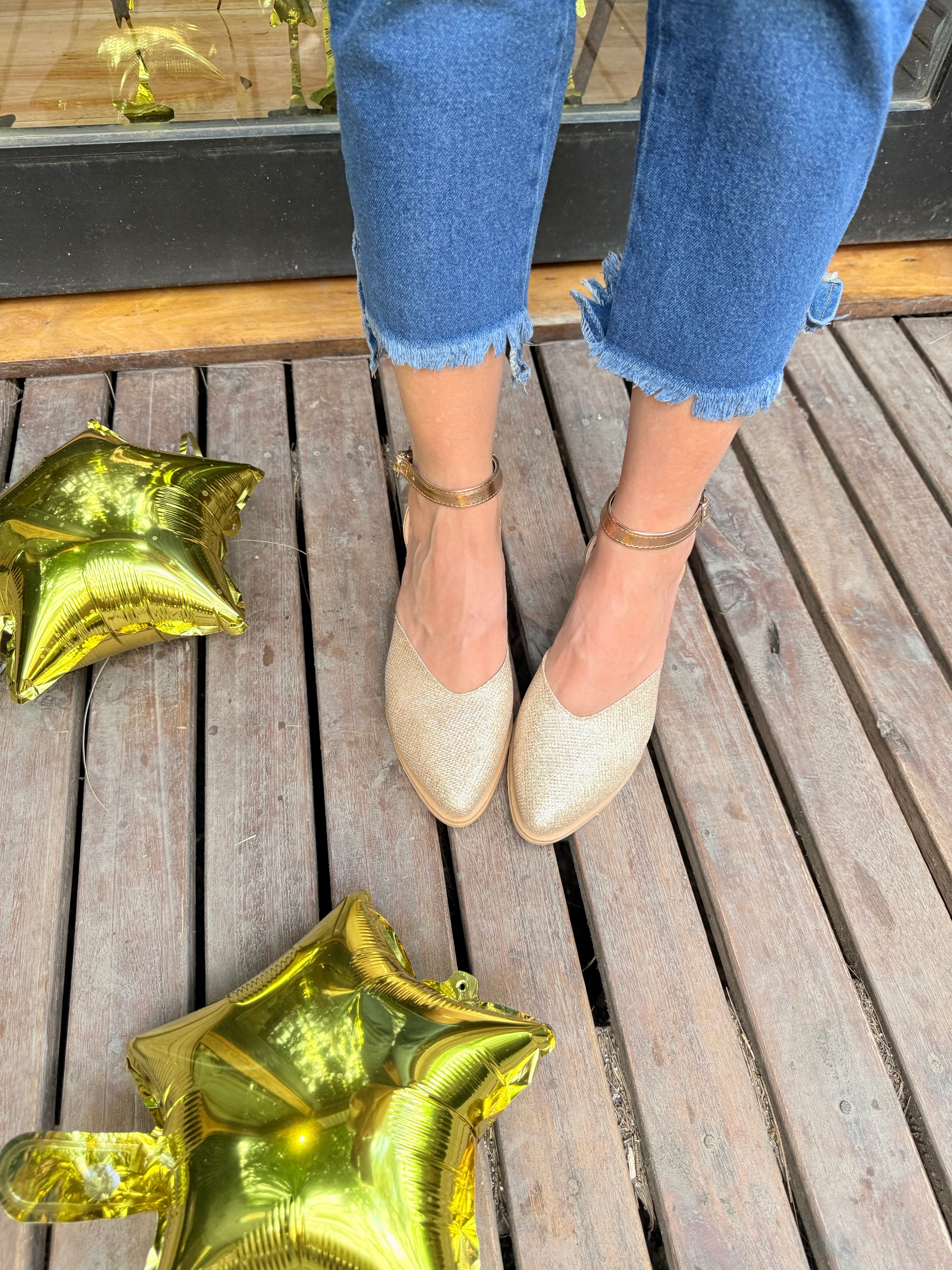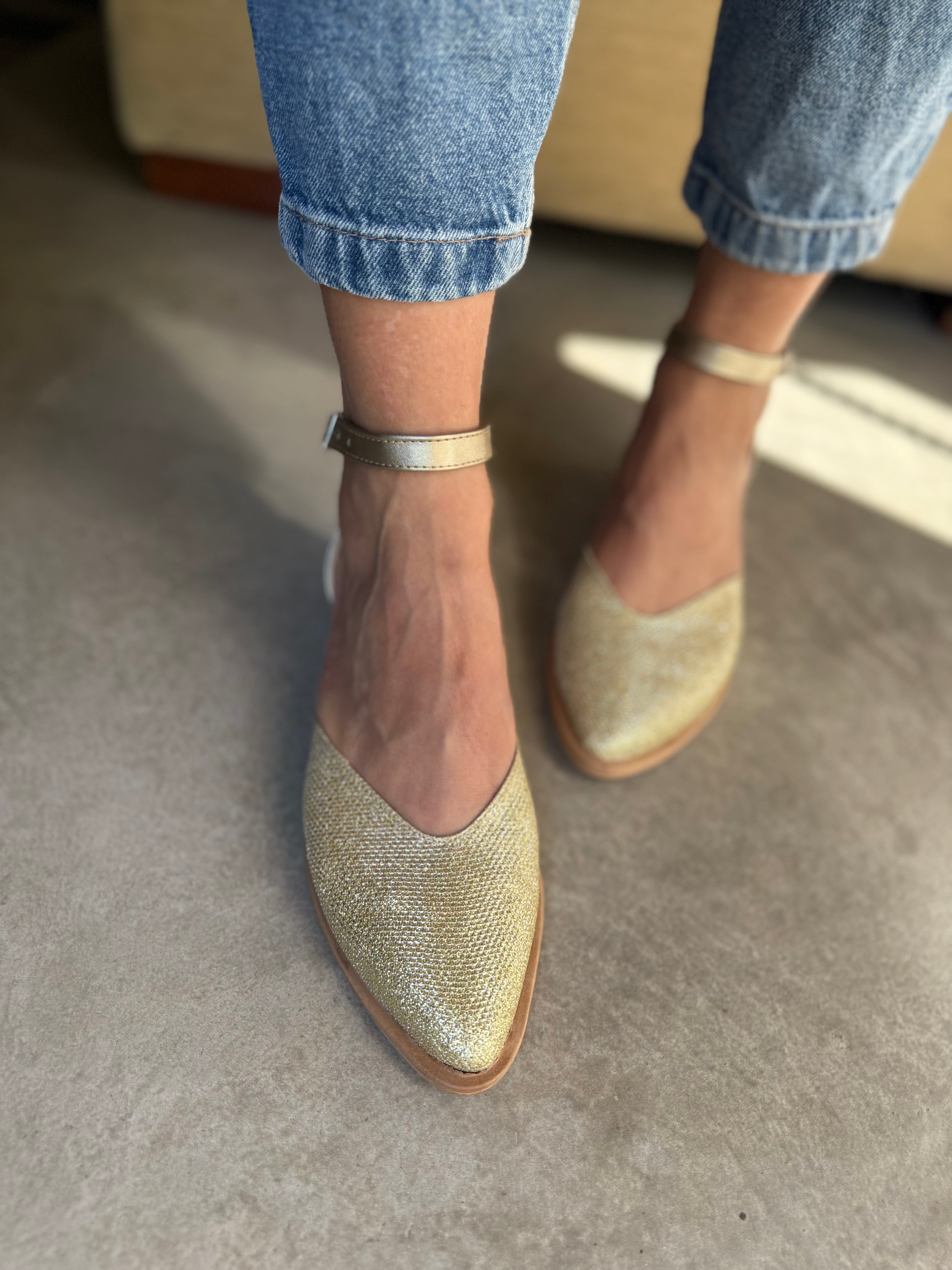 - Color: ORO Punta Rafia Glitter combinado con oro Ecocuero