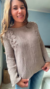SWEATER JABUTICABA AZUL TEJIDO EN LANA MOHAIR con FLORES BORDADAS A MANO