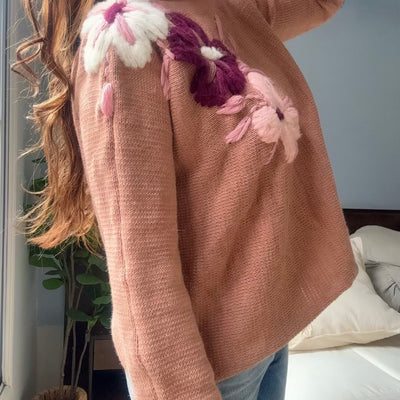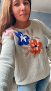 SWEATER TEJIDO CUORE VIOLETA EN LANA MOHAIR con CORAZONES BLANCOS BORDADO A MANOS