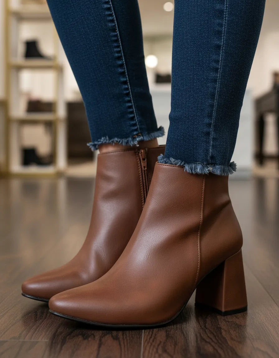 Botineta con Cierre Lateral confeccionado en Cuero Ecológico. Taco cuadrado