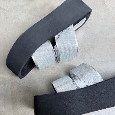 SANDALIAS FABIANA 2 FAJA PLATA RAFIA PLATAFORMA NEGRA 6 CM (2da.SELECCIÓN)