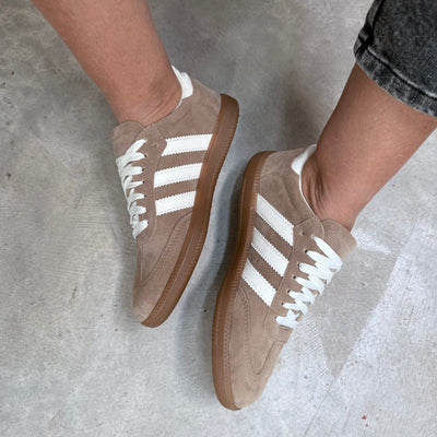 ZAPATILLAS PAMPA ACORDONADA GAMUZA BEIGE TIRAS BLANCAS