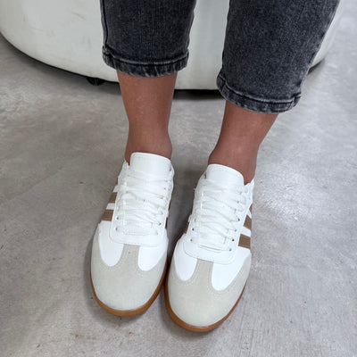 ZAPATILLAS PAMPA ACORDONADA BLANCO TIRAS DORADAS