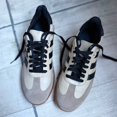 ZAPATILLAS PAMPA NEGRO 3 TIRAS BLANCO ACORDONADA