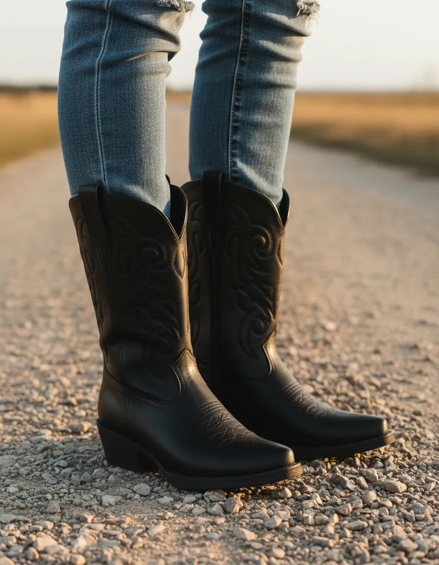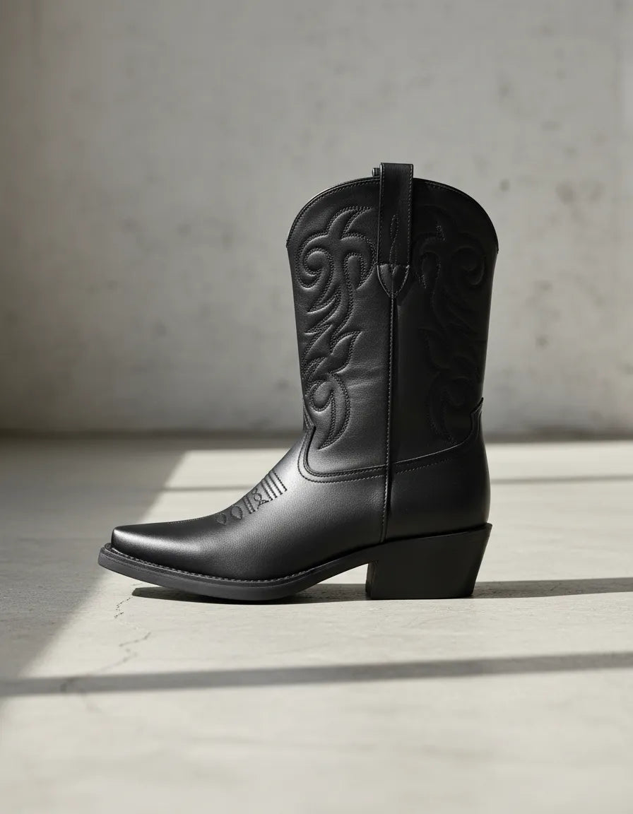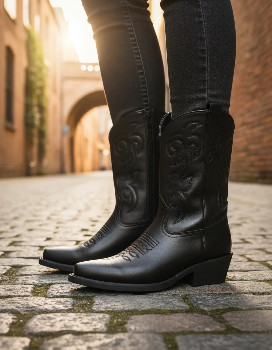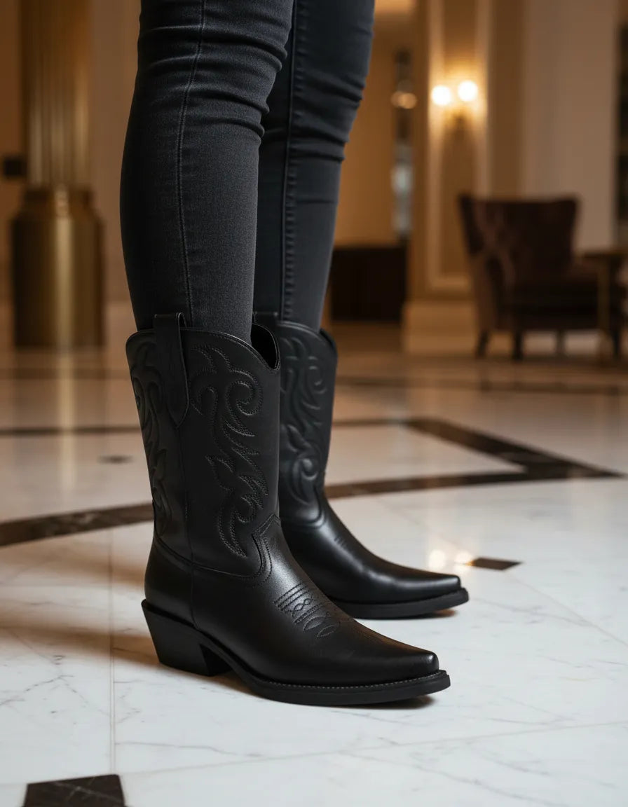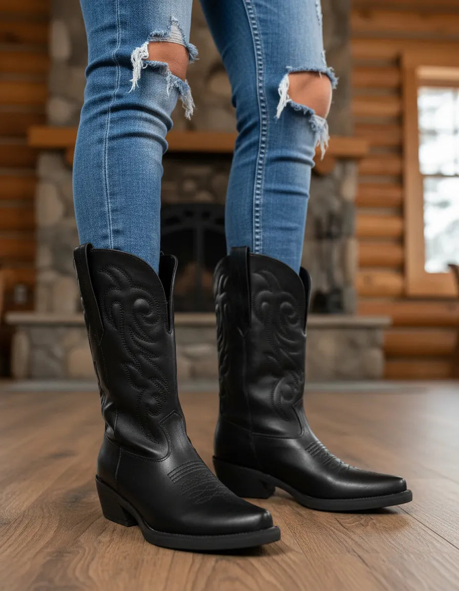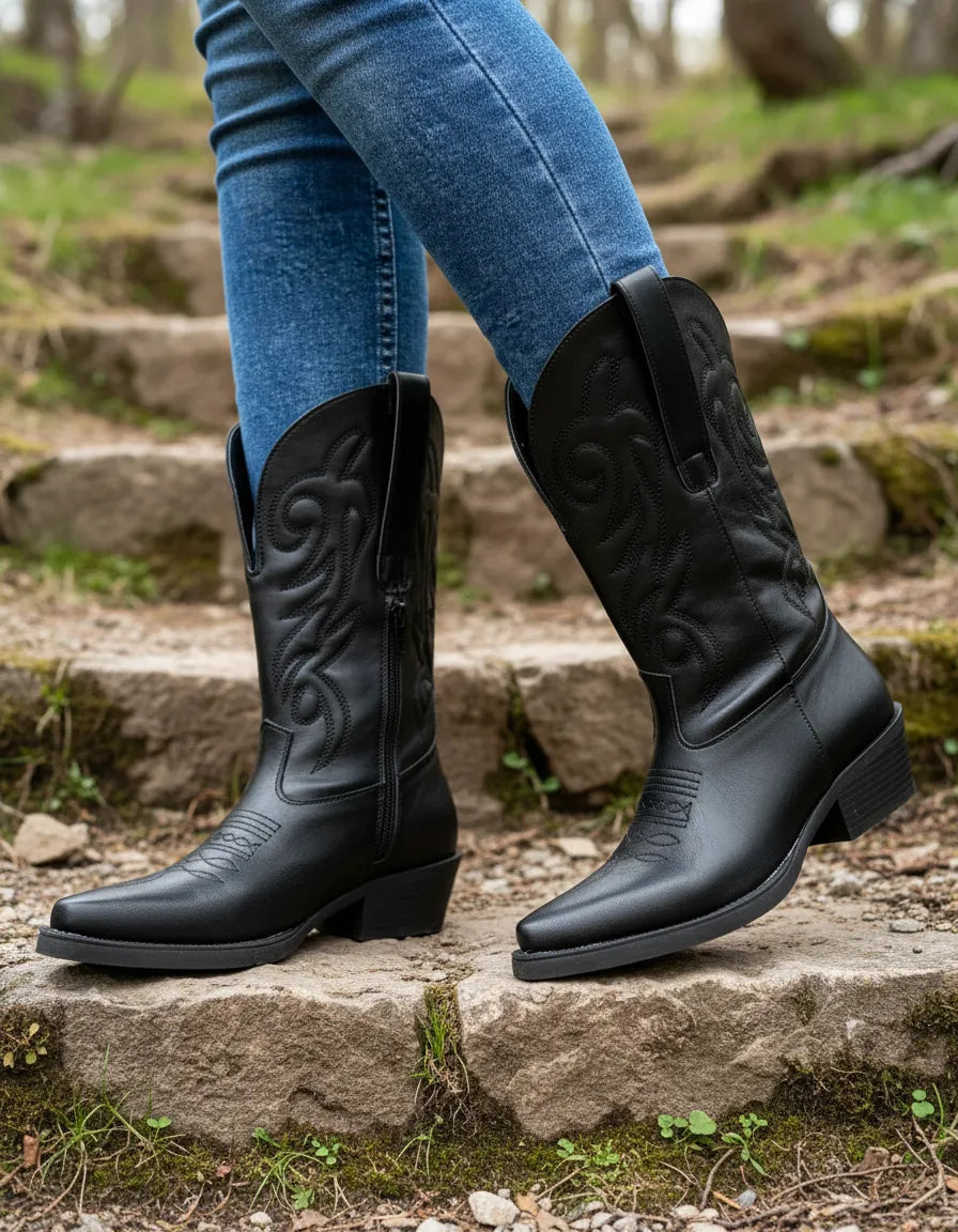 BOTAS TEXANAS NIKY BORDADA PUNTA FINA CIERRE LATERAL