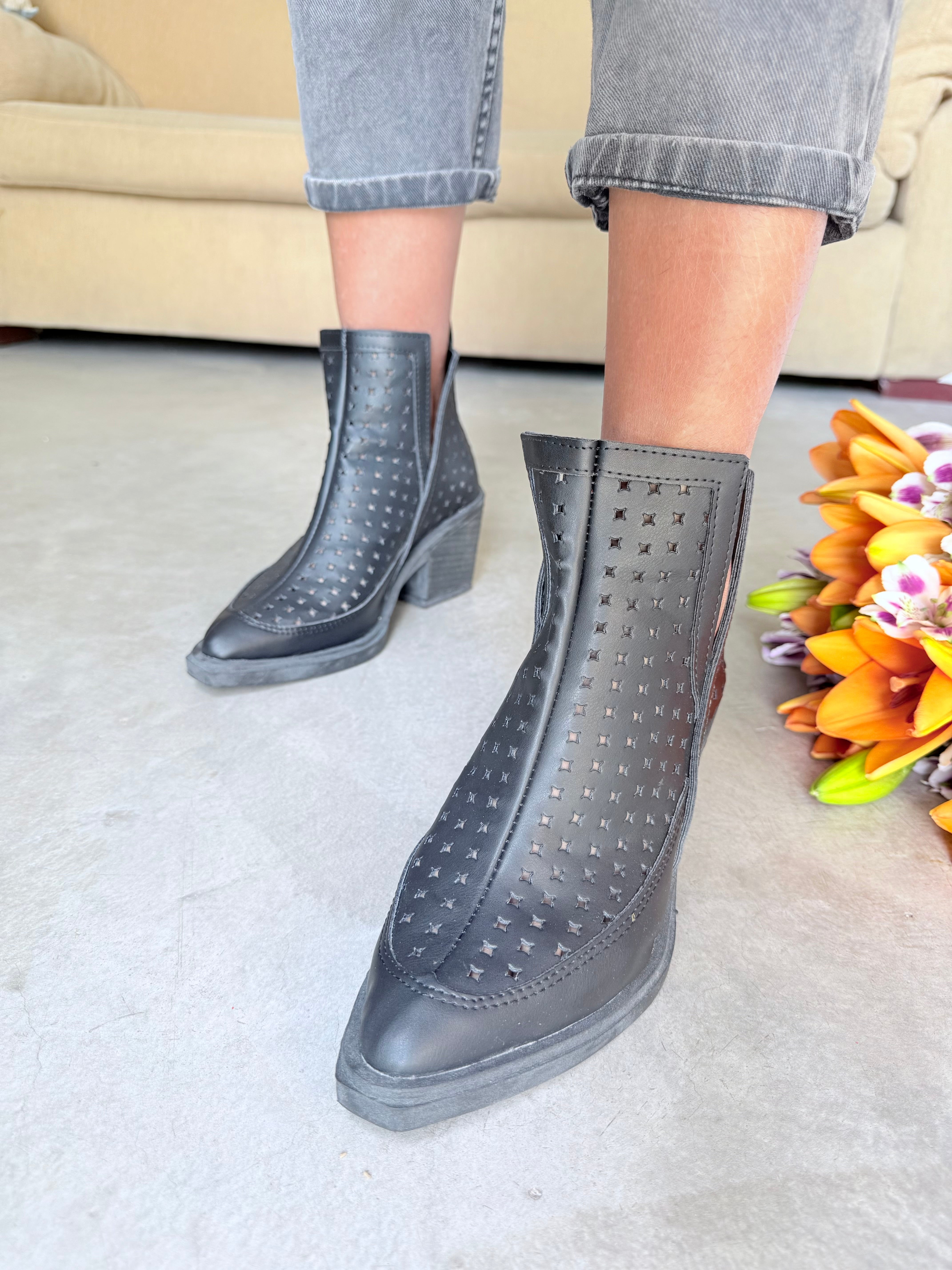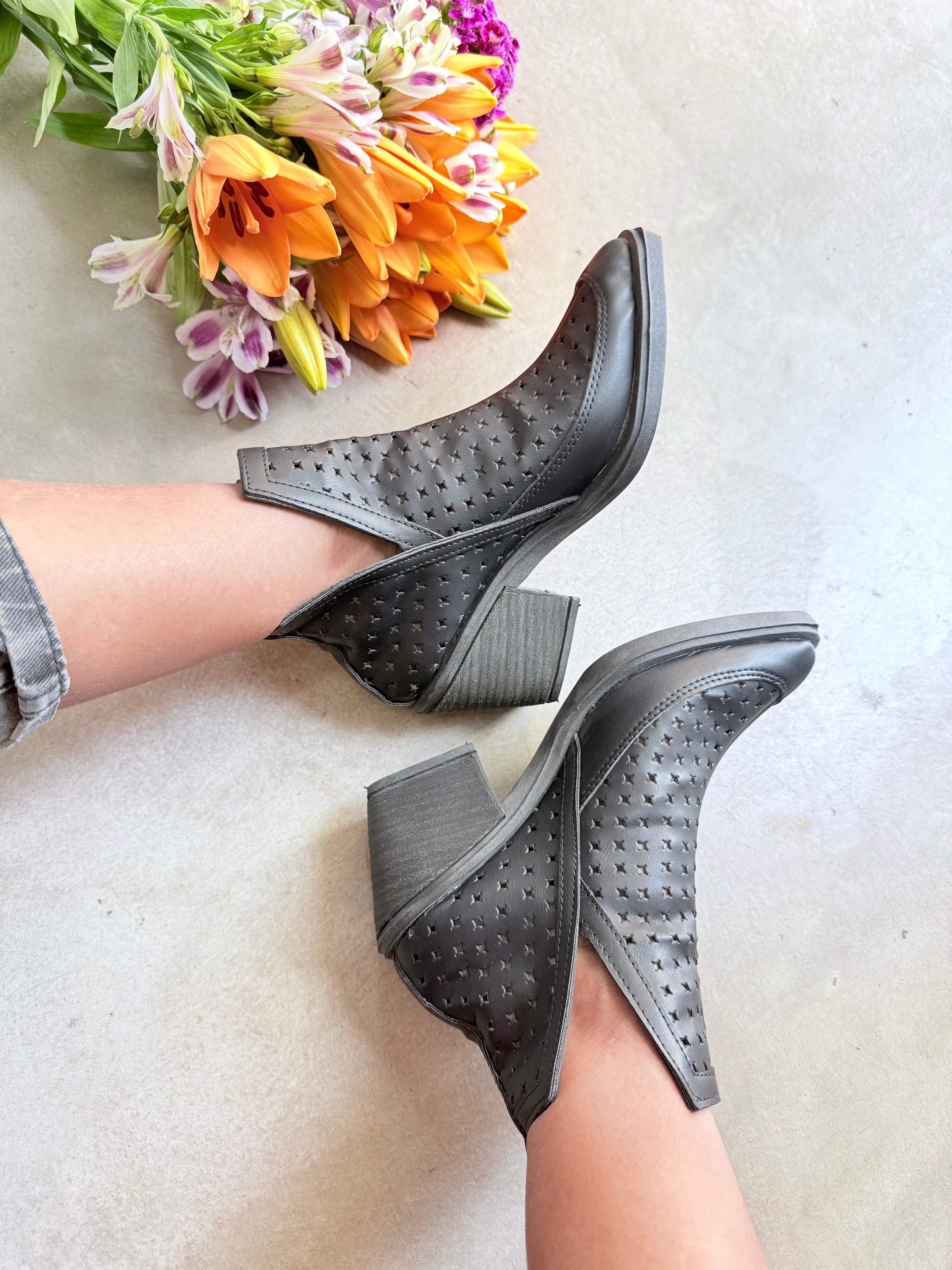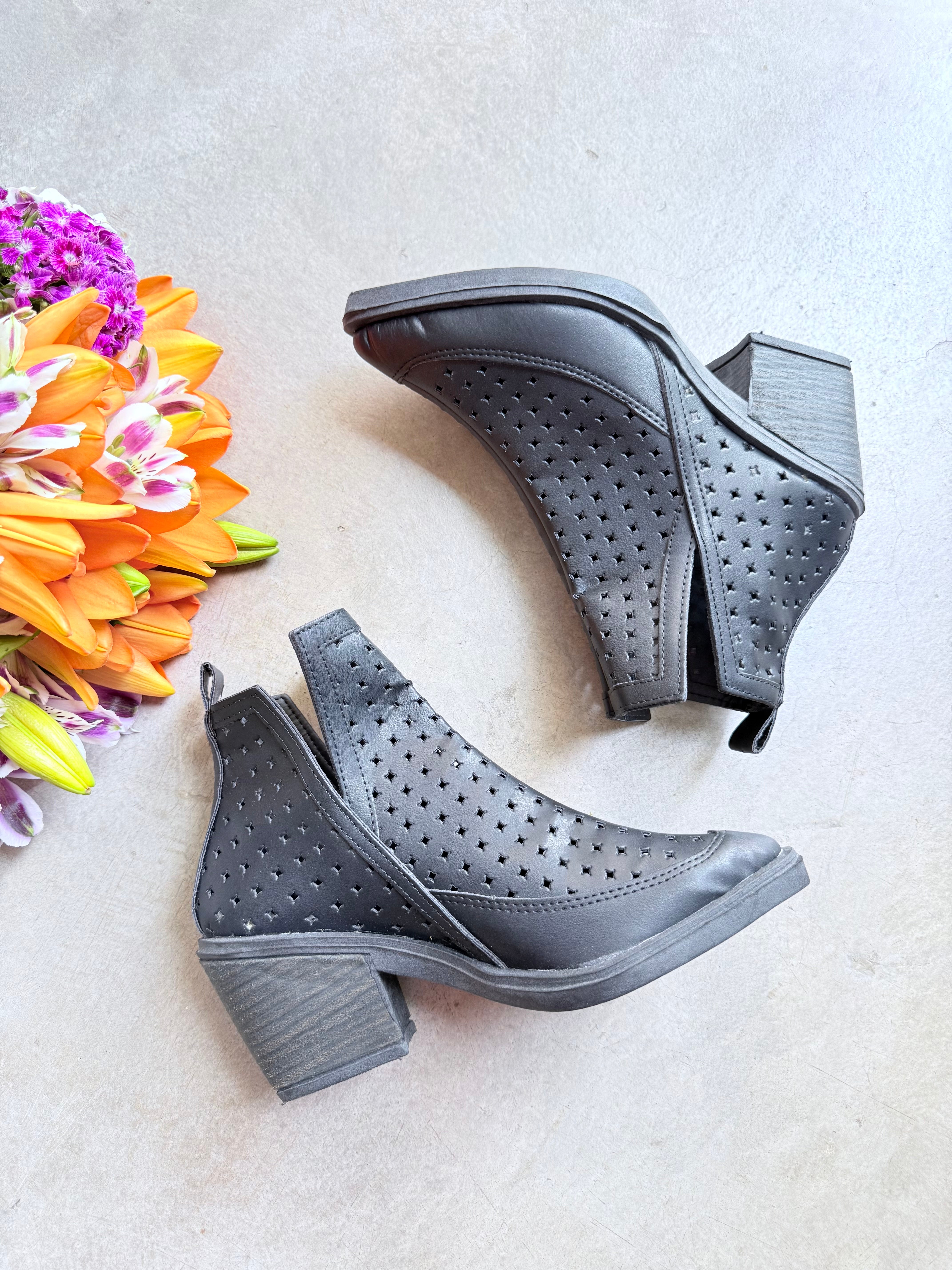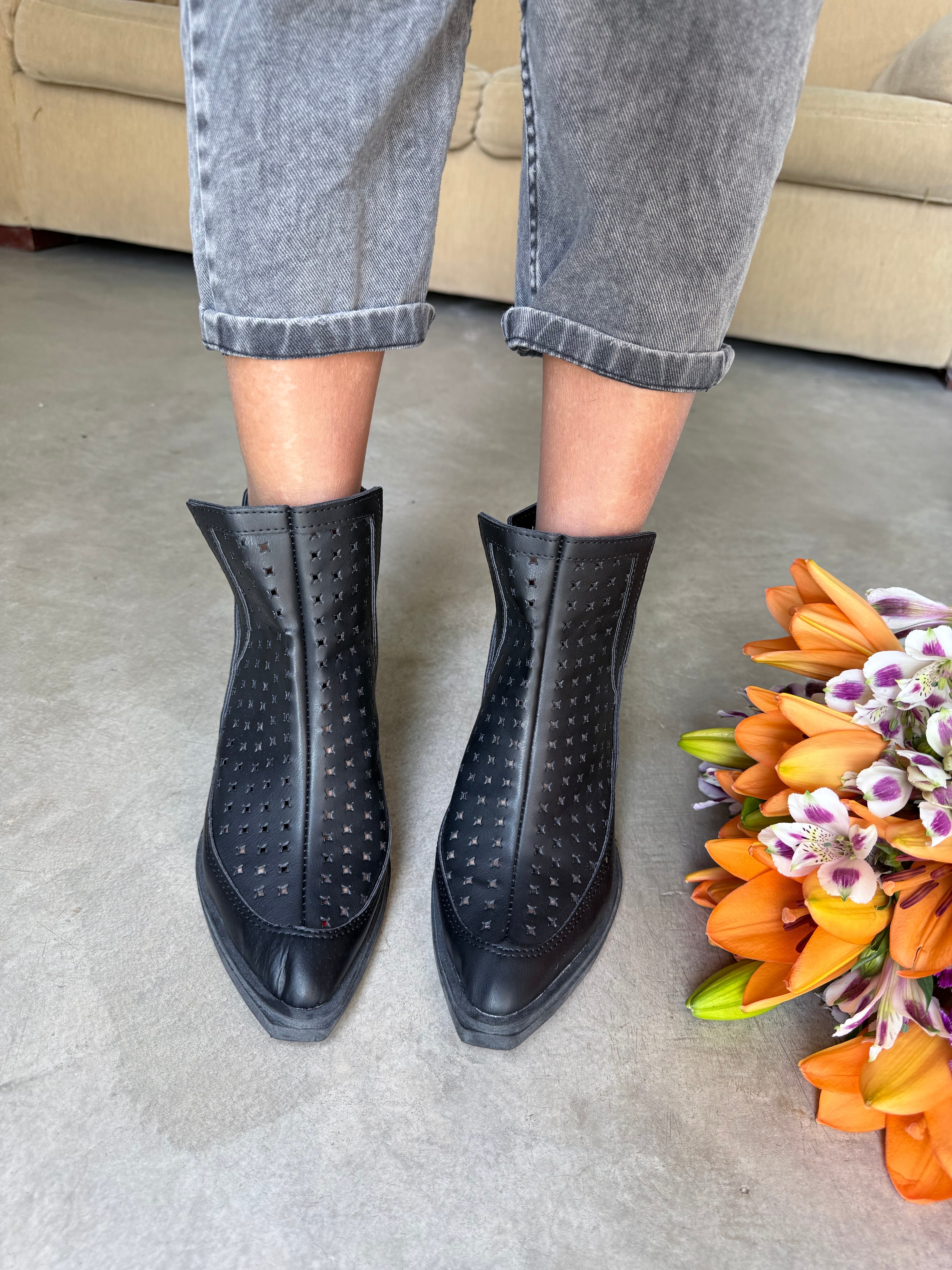 FARID (Art.570) INFORMACIÓN DEL PRODUCTO: Material: Ecocuero - Altura del Taco: 5 cm.- Color: Negro- Calado ESTRELLAS- Acceso: Superior