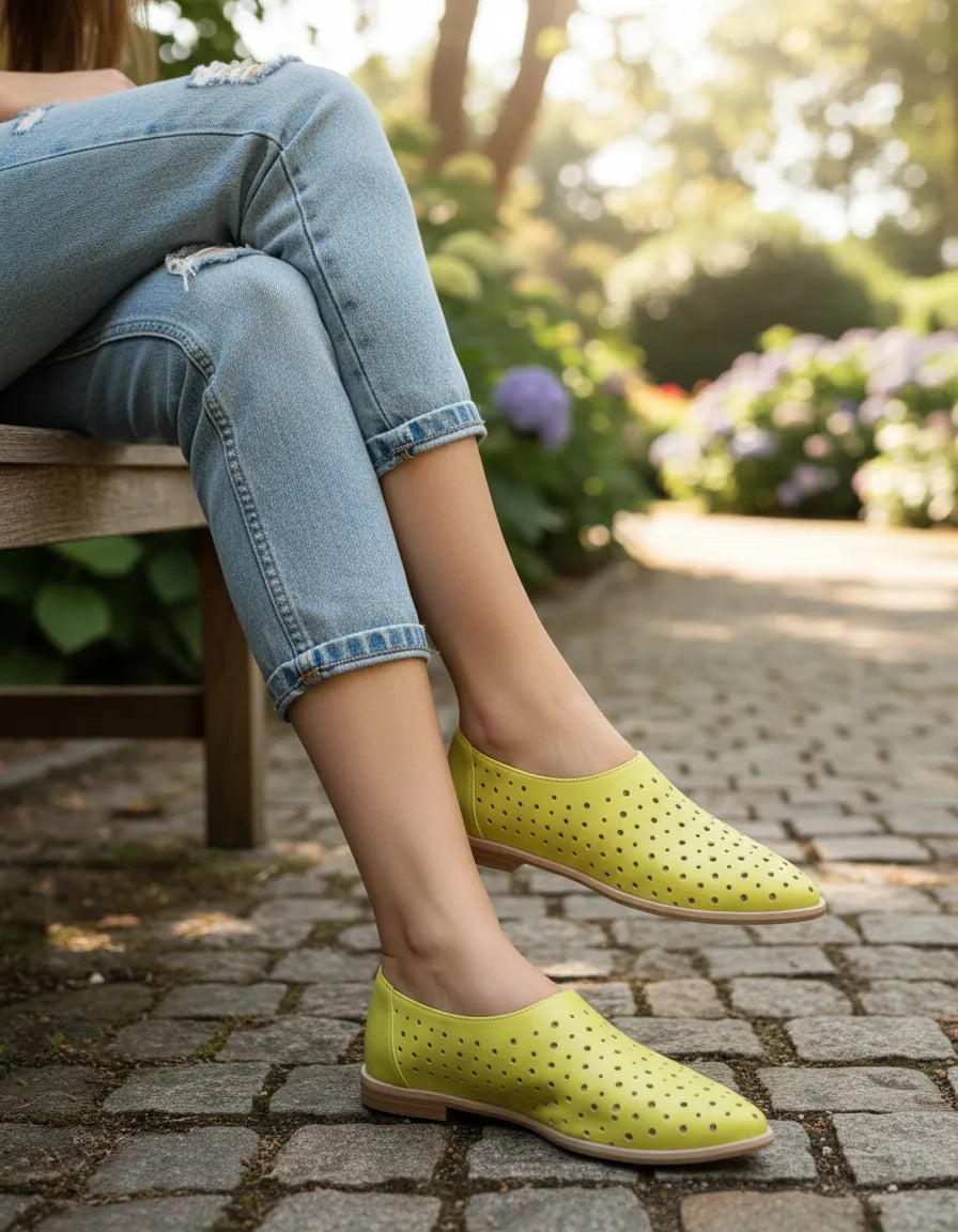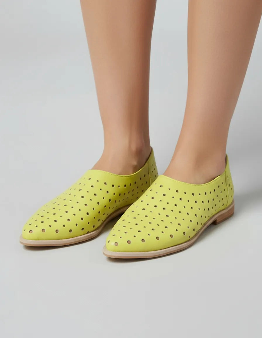 CHATITAS ALADINO AMARILLO LIMA PUNTA FINA CALADAS SIMIL CUERO