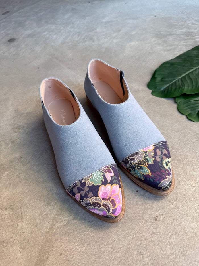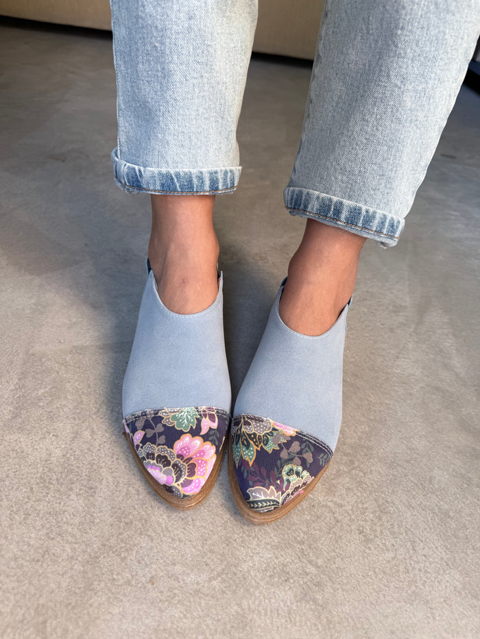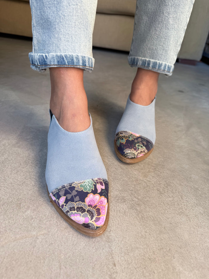 CHATITAS ANITA LAVANDA CELESTE PUNTA FINA PUNTERA FLOR HAWAI (GAMUZA)