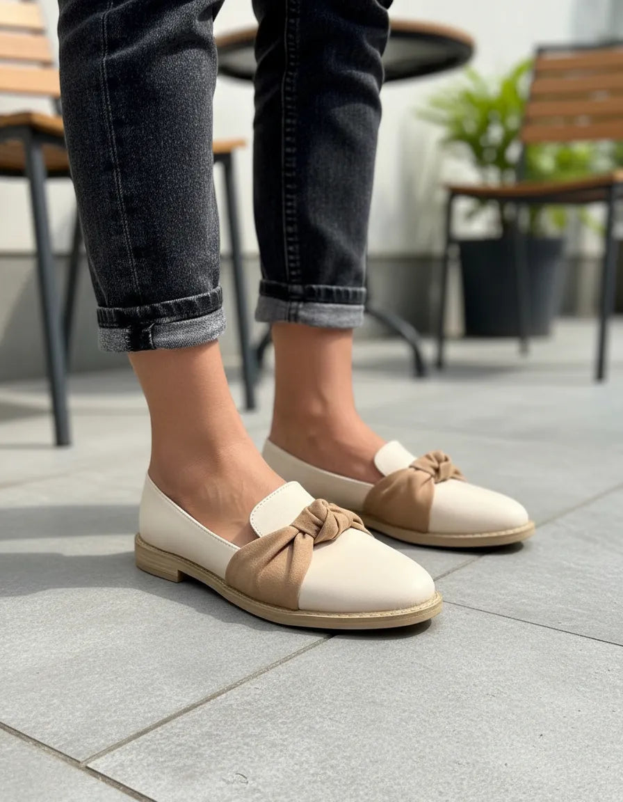 LUCHINA - (Art. LIZ) INFORMACIÓN DEL PRODUCTO: Color: Chantilly con nudo visonMaterial Cuero ecológico  Punta Fina Base de Goma Antideslizante TR Altura del Taco: 3 cm. Horma estándar a justa...