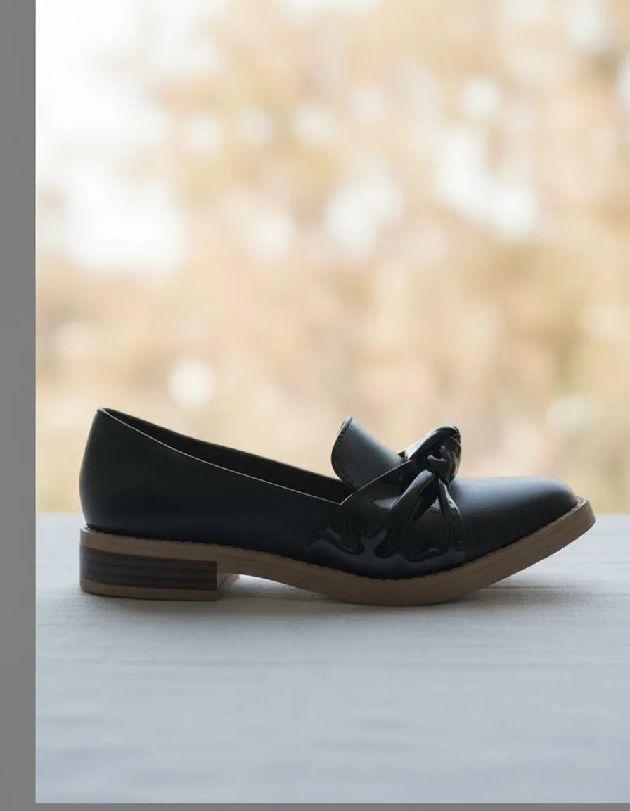 CHATITAS LUCHINA NEGRO CON NUDO NEGRO CHAROL Y TACO