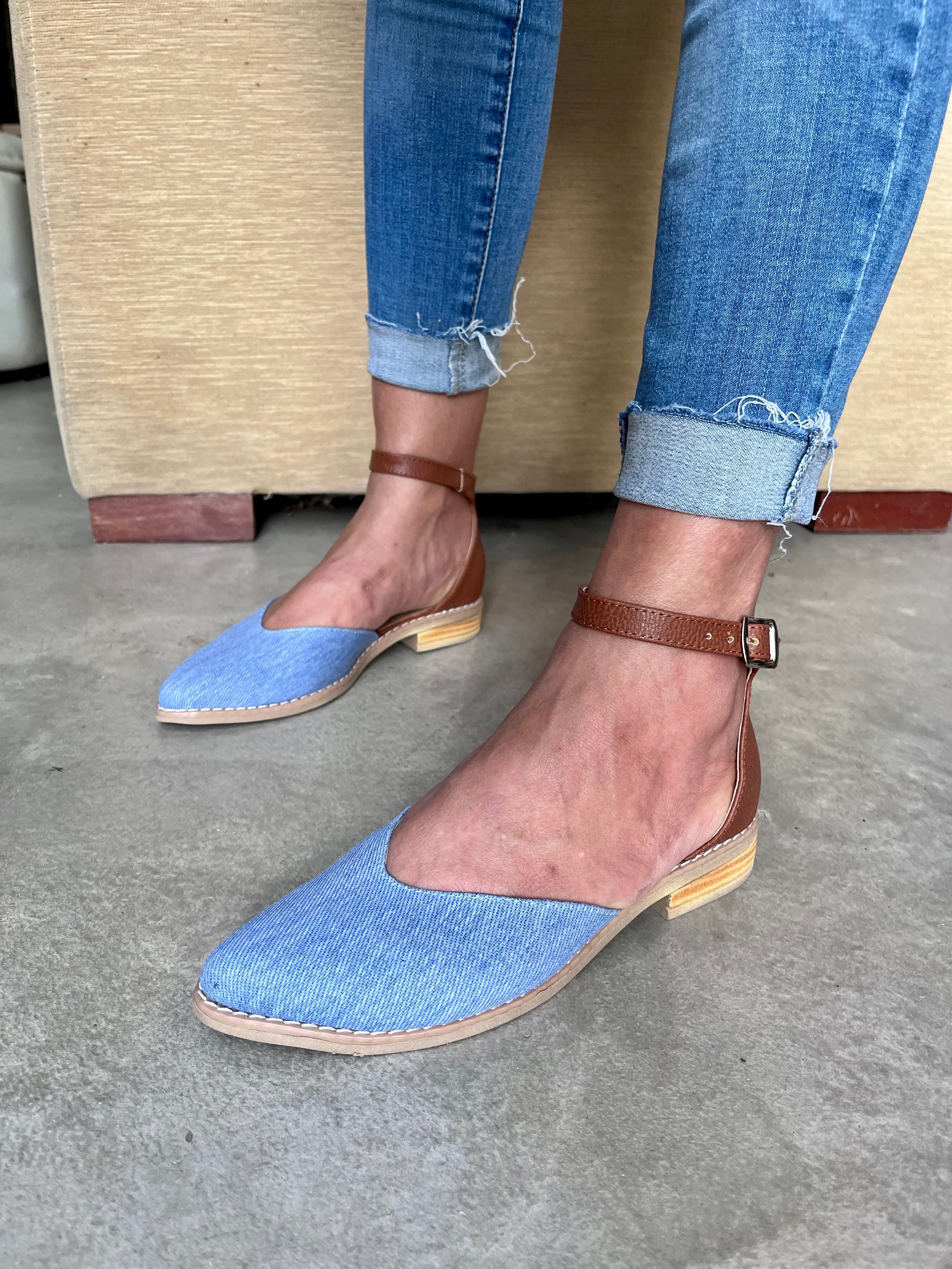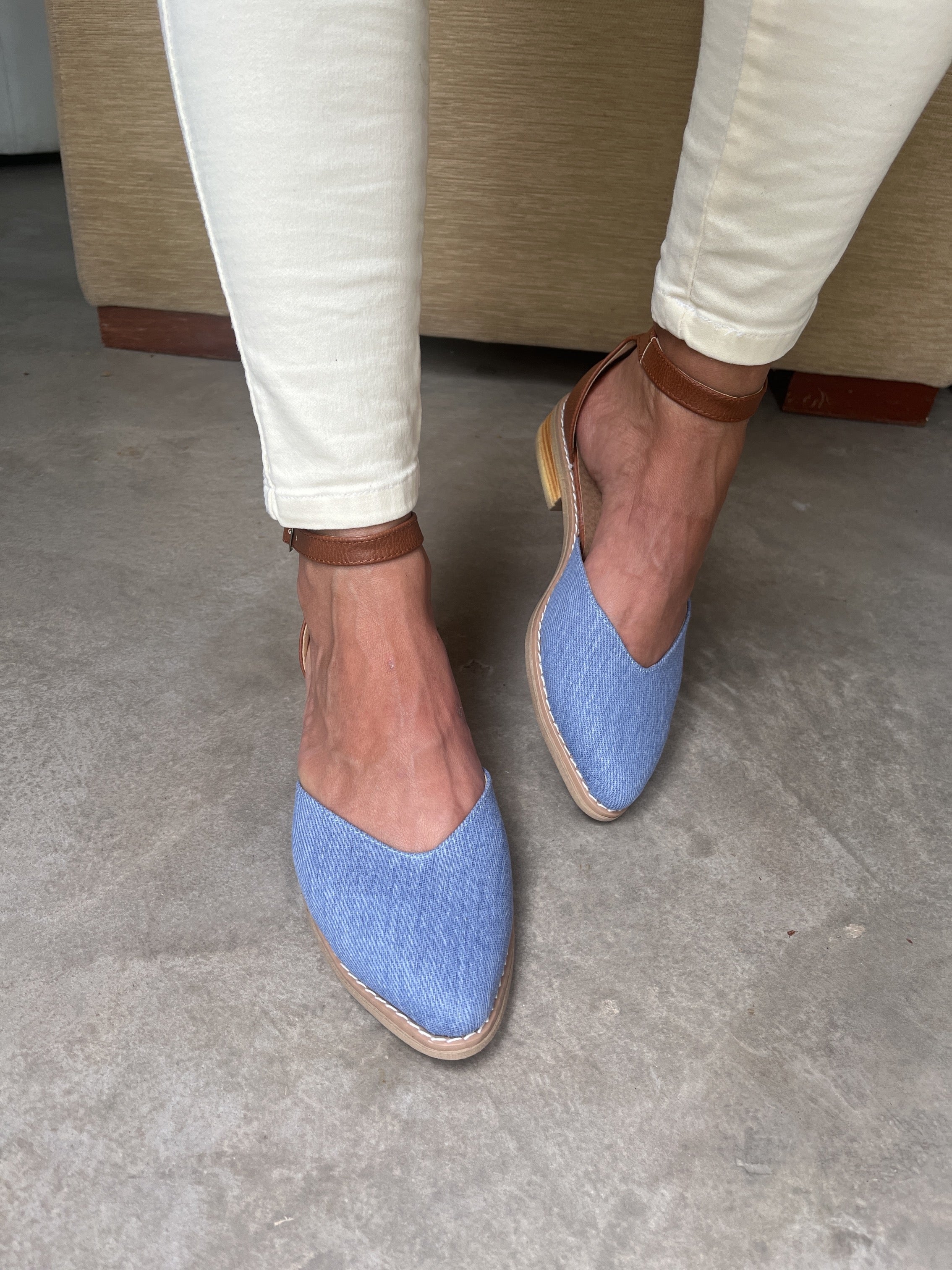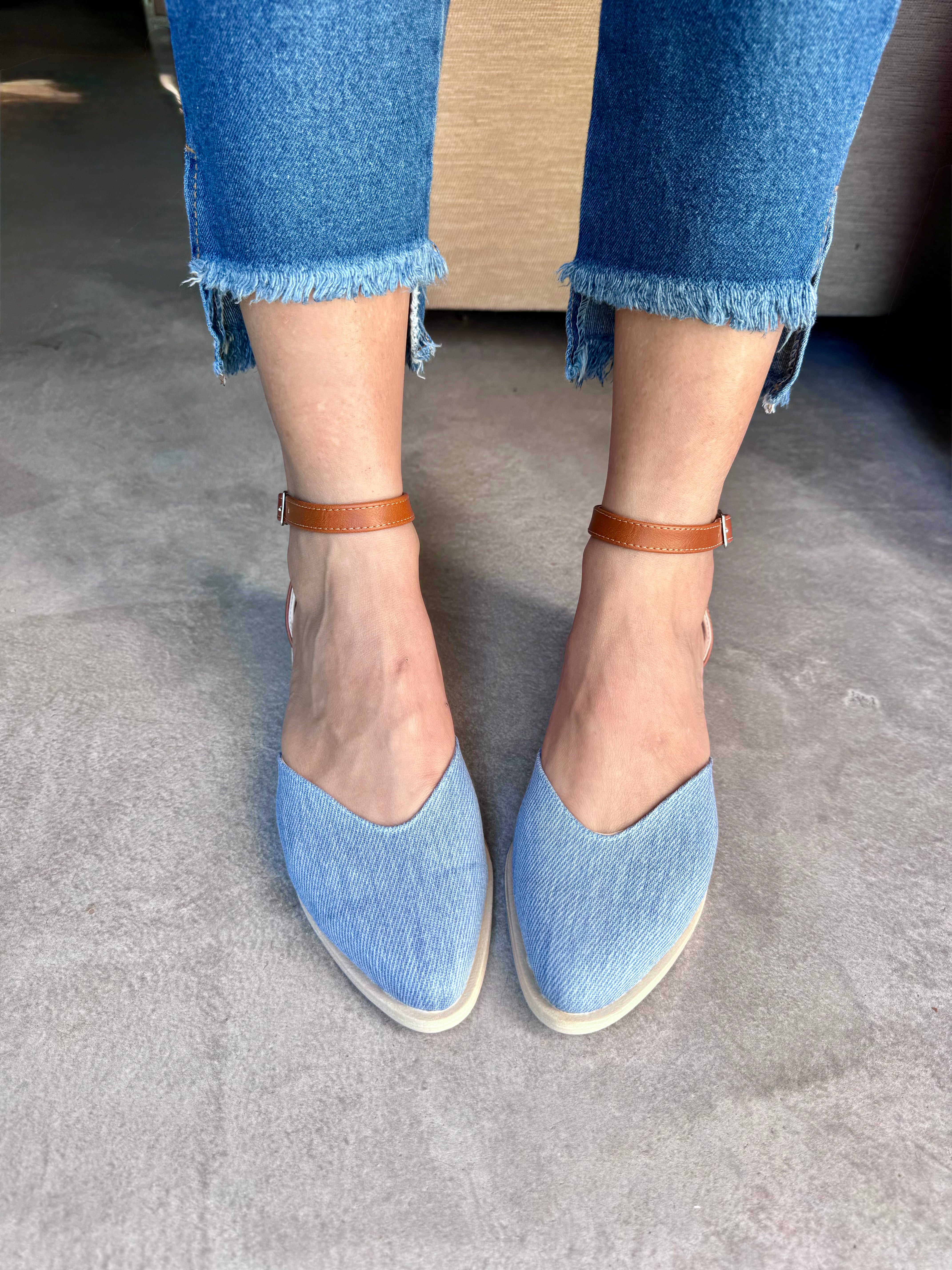 NINITA (Art. 310) INFORMACIÓN DEL PRODUCTO: - Color: Jean celeste combinado con suela - Diseño: corte corazón   - Material: Símil Cuero combinado jean celeste en la punta y suela en...