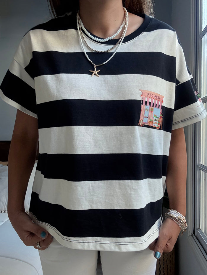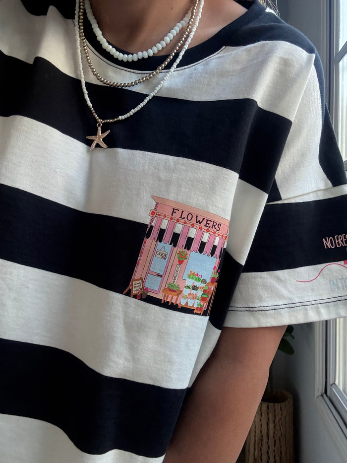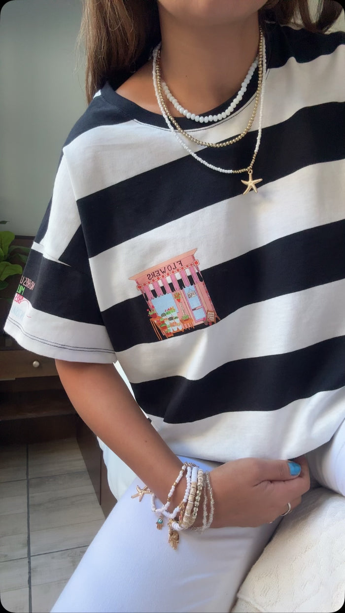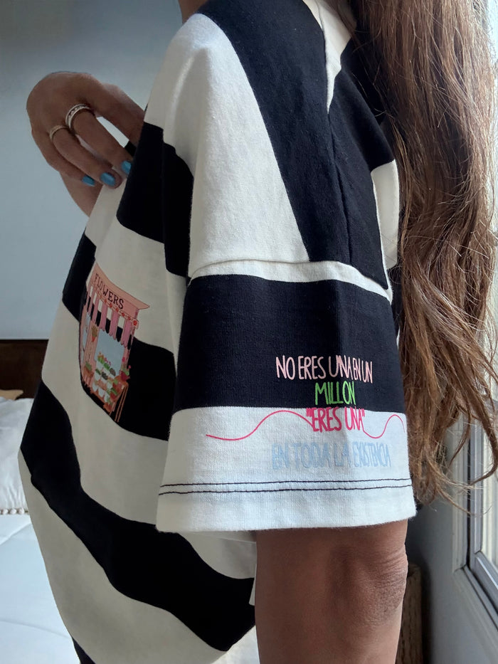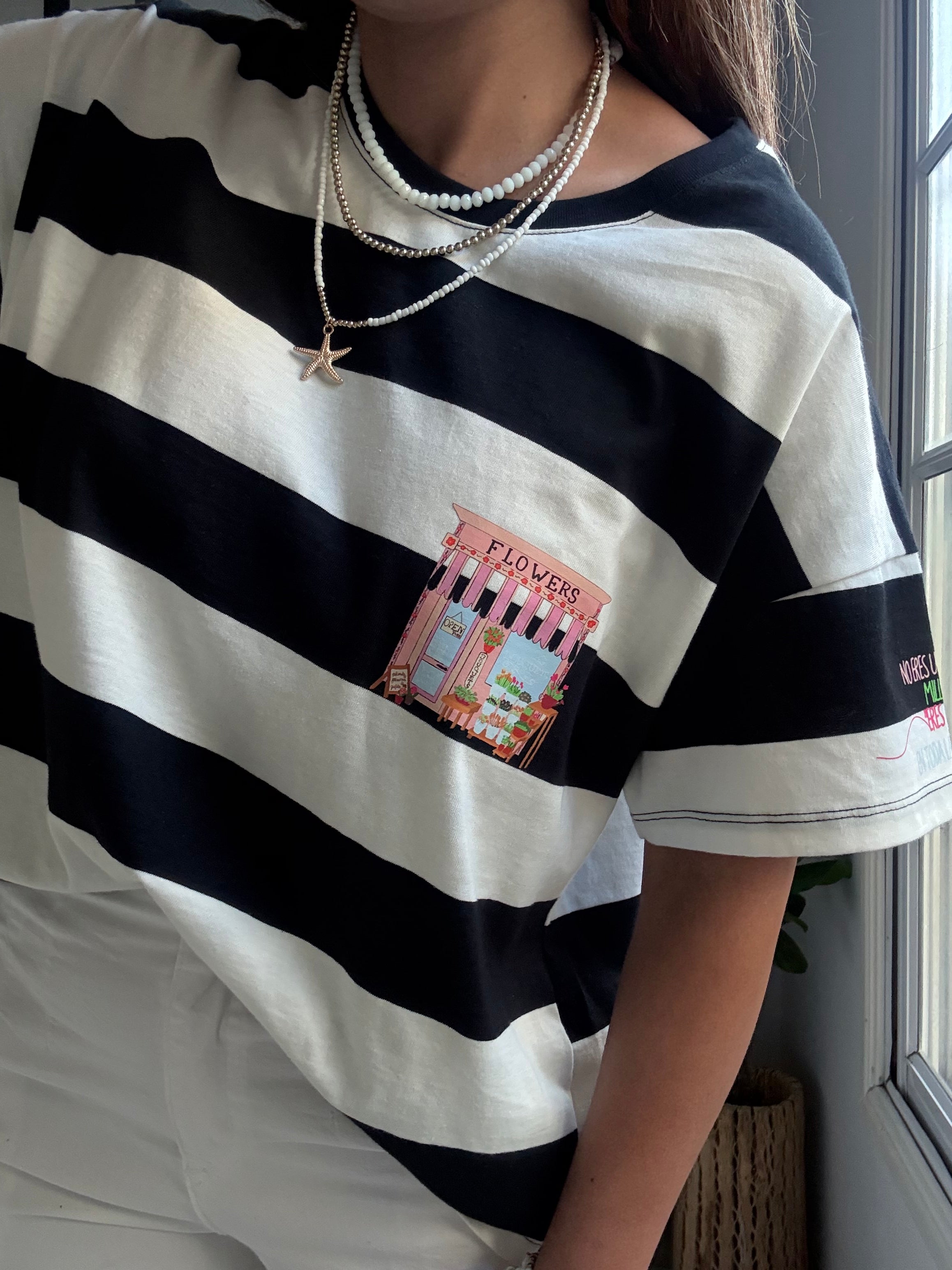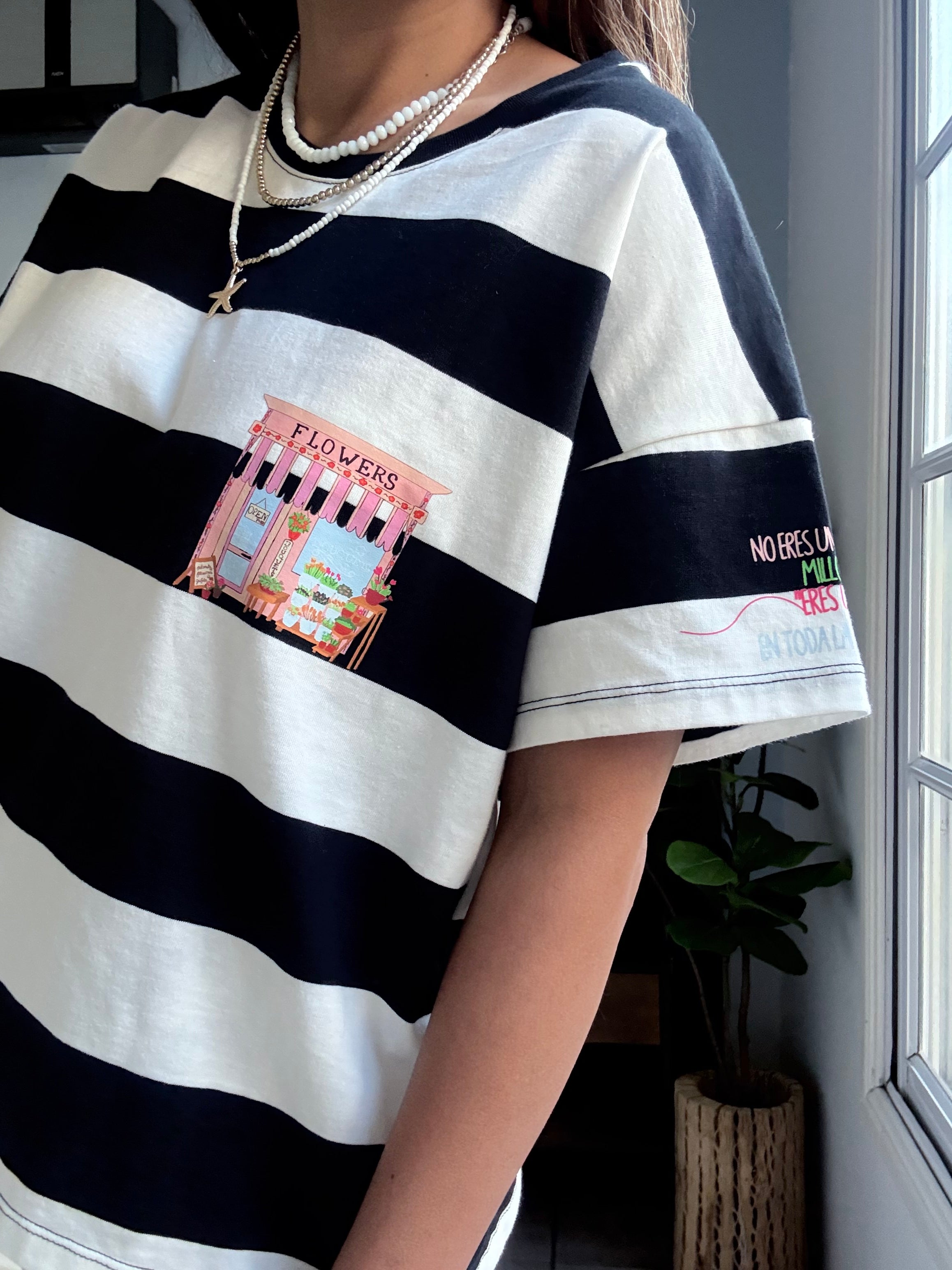 REMERA ARATI FLORERÍA RAYADA CUELLO REDONDO CON MANGAS (Ed. limitada MANANTIALES 111)