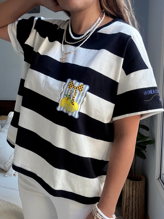 REMERA ARATI LEMON RAYADA CUELLO REDONDO CON MANGAS (Ed. limitada MANANTIALES 111)
